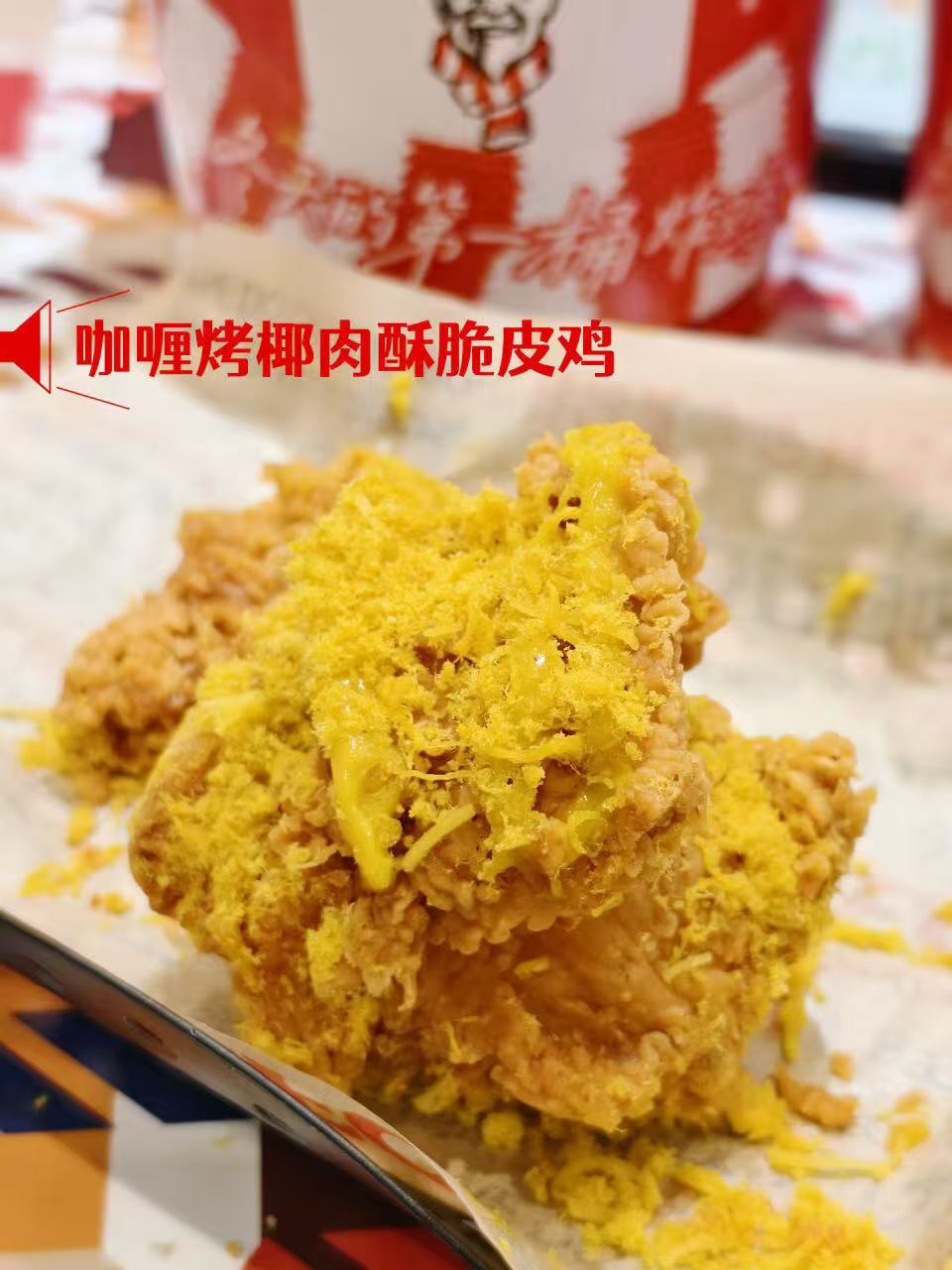 和时代少年团吃冬天第一桶炸鸡作为去年蹲过烤椰肉酥脆皮鸡的人,看到它回归还升级成咖喱味,直接激动到拍桌!等了整整一年,终于不用再惦记去年那口脆嫩了~今天起就能点,拉上朋友拼39.9元的吃过瘾炸鸡桶超划算,15款炸鸡甜品饮料随便选,最多能重复要5块鸡,算下来每块还不到8块钱,这性价比真的绝了!(根据我的经验,肯德基即使是新品也要早点买,后面经常断货!)入冬仪式感是第一桶炸鸡给的冬天最治愈的不就是和重要的人一起吃热炸鸡嘛~想象着和朋友边啃咖喱味的脆皮鸡,暖乎乎的肉汁在嘴里爆开,连疲惫都被治愈了。这波入冬仪式感,必须用肯德基这桶炸鸡安排上!