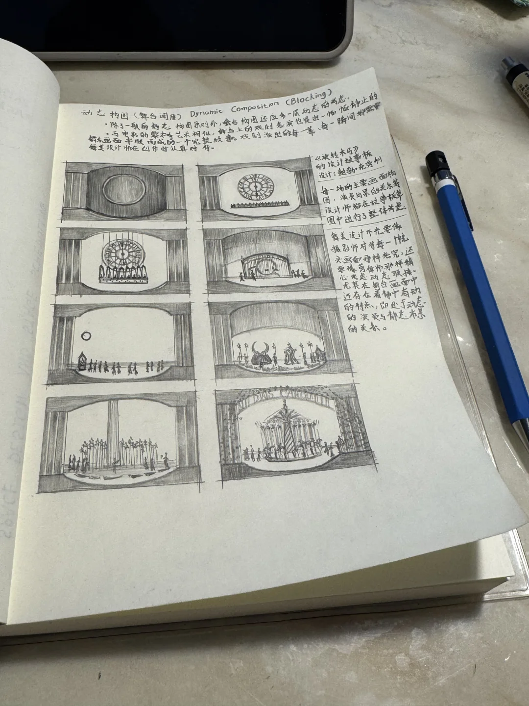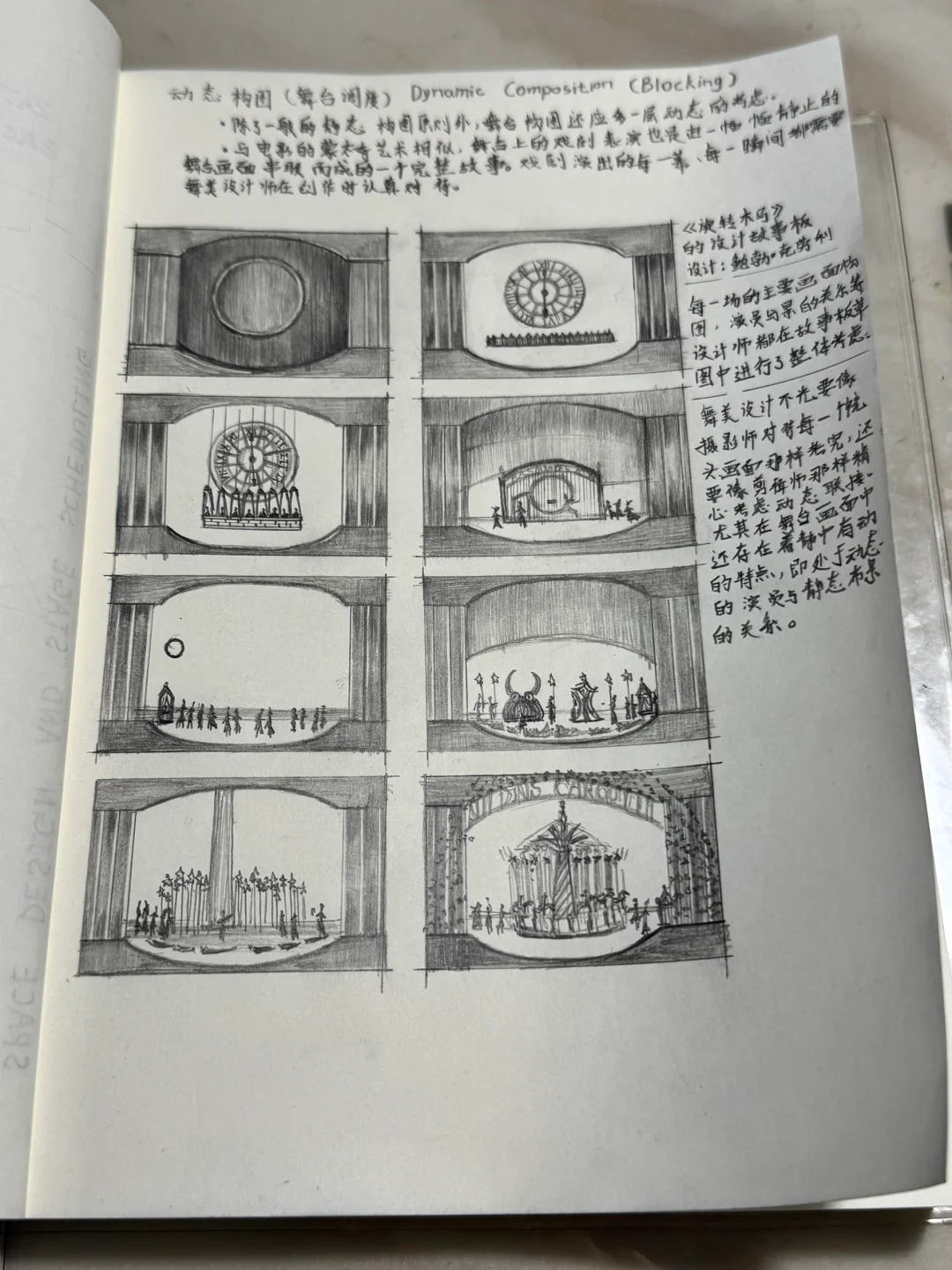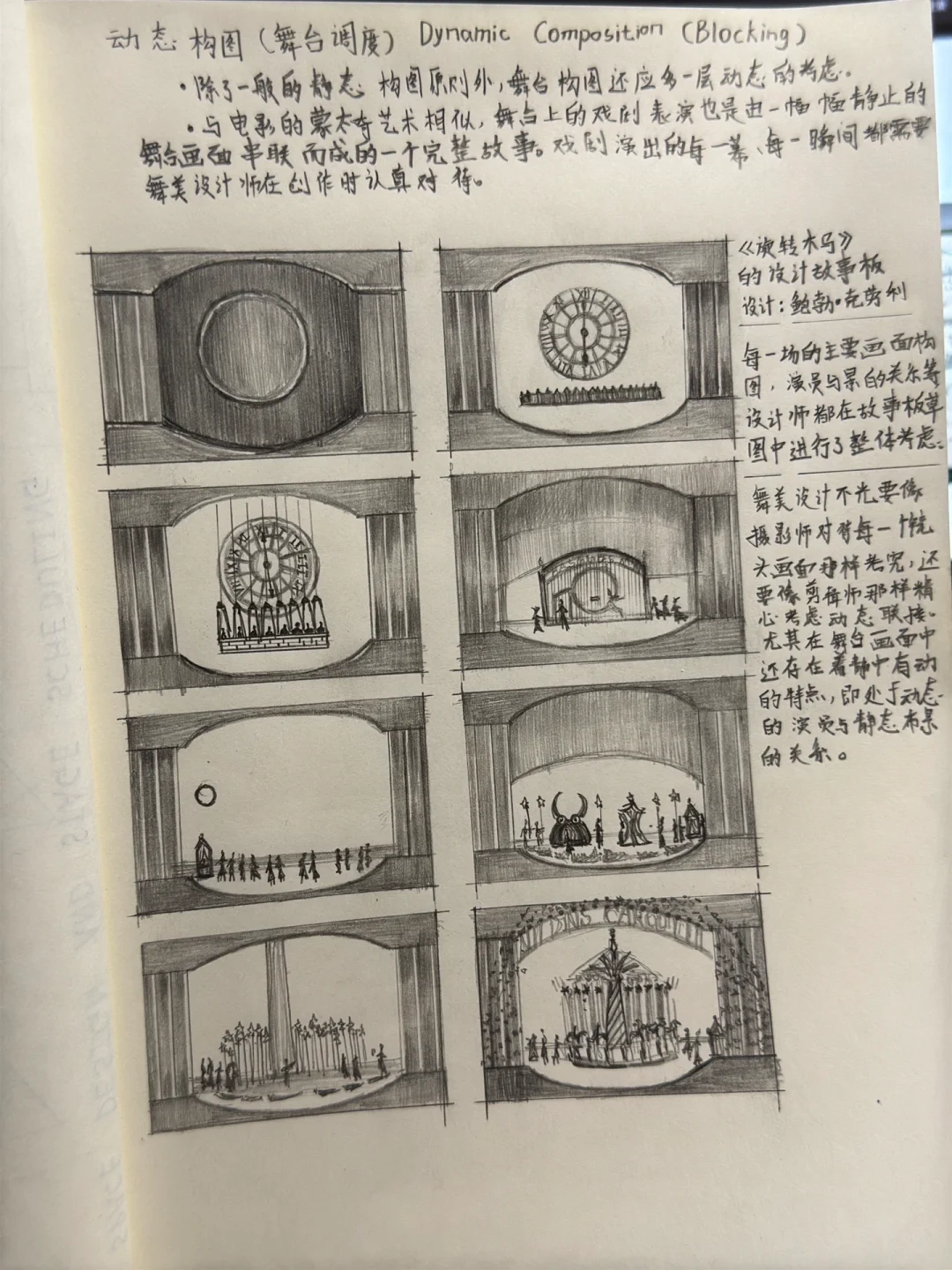 ·舞台调度即演员在台上的位置与行动线,调度是随着剧情发展不断运动与变化的,因此构图也是运动的。