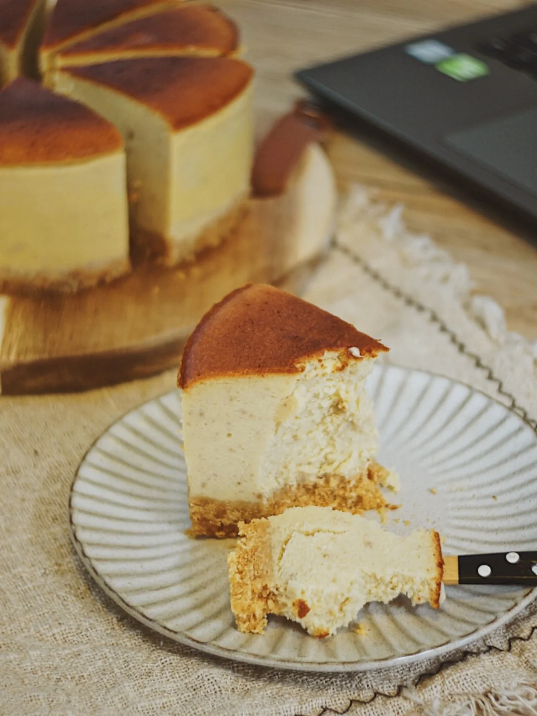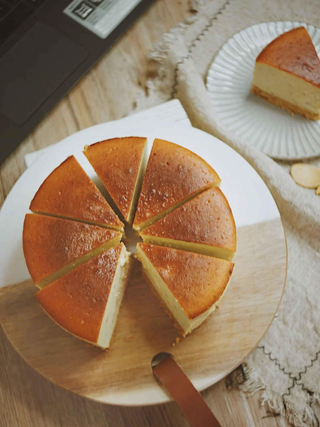 5️⃣烤好的芝士蛋糕,放置室温以后,冰箱冷藏4个小时以上。就可以切块食用了