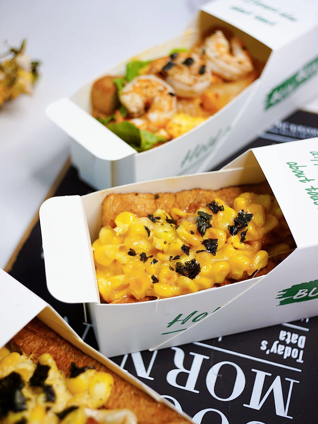 芝士玉米(玉米、马苏里拉芝士、炼乳、海苔碎、吐司)