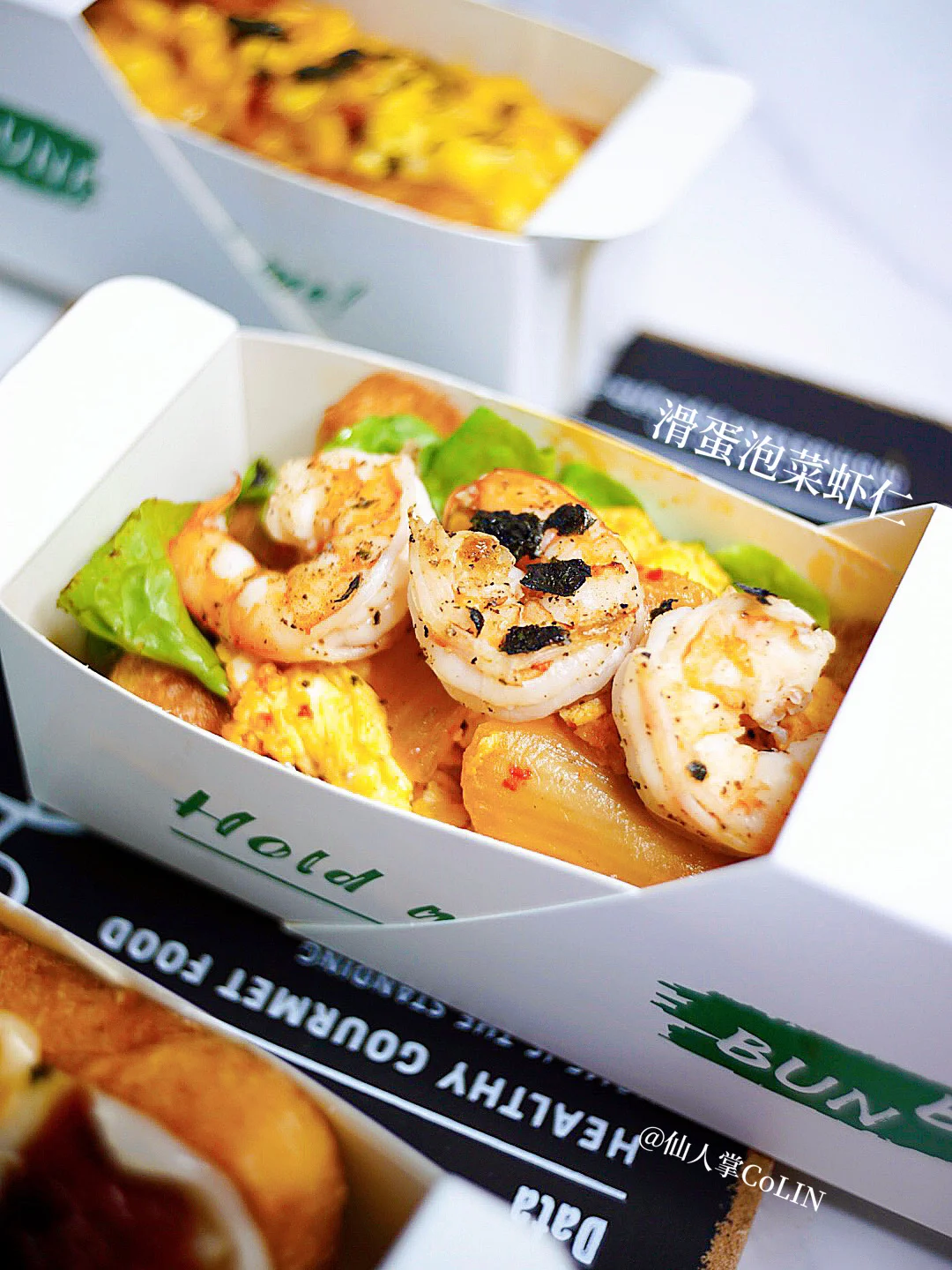 滑蛋泡菜(鸡蛋2个、牛奶100ml、韩式泡菜、基围虾、吐司、生菜)