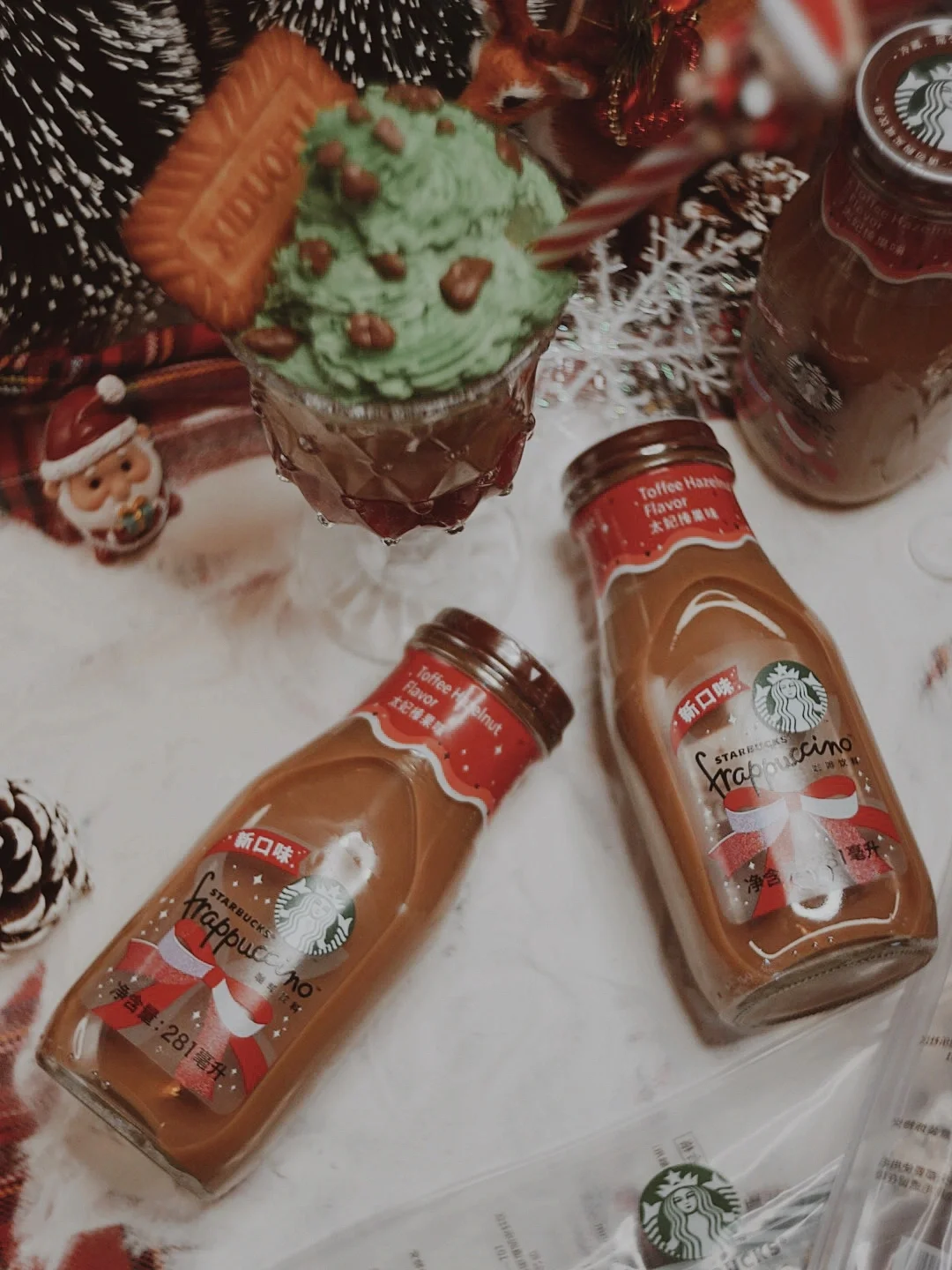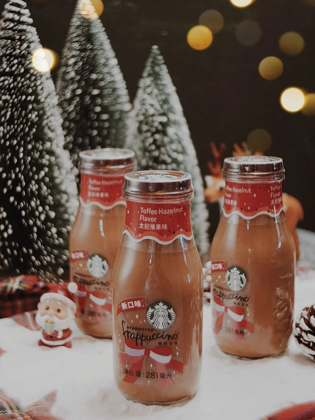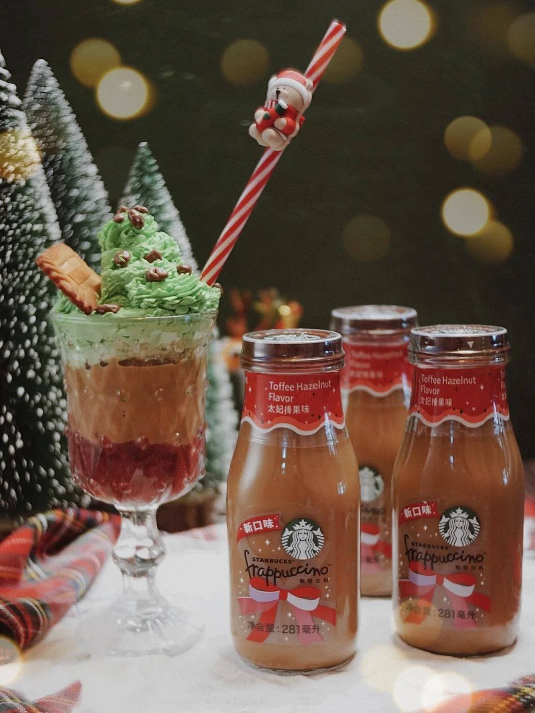 ▪️我在的城市还没有下雪❄️于是我就自己在家用星爸爸太妃榛果味的瓶装星冰乐,做了一杯圣诞氛围满满的咖啡饮品🧋再插上我去全家🛒瓶装星冰乐的时候送的小熊吸管,氛围感拿捏的到位~