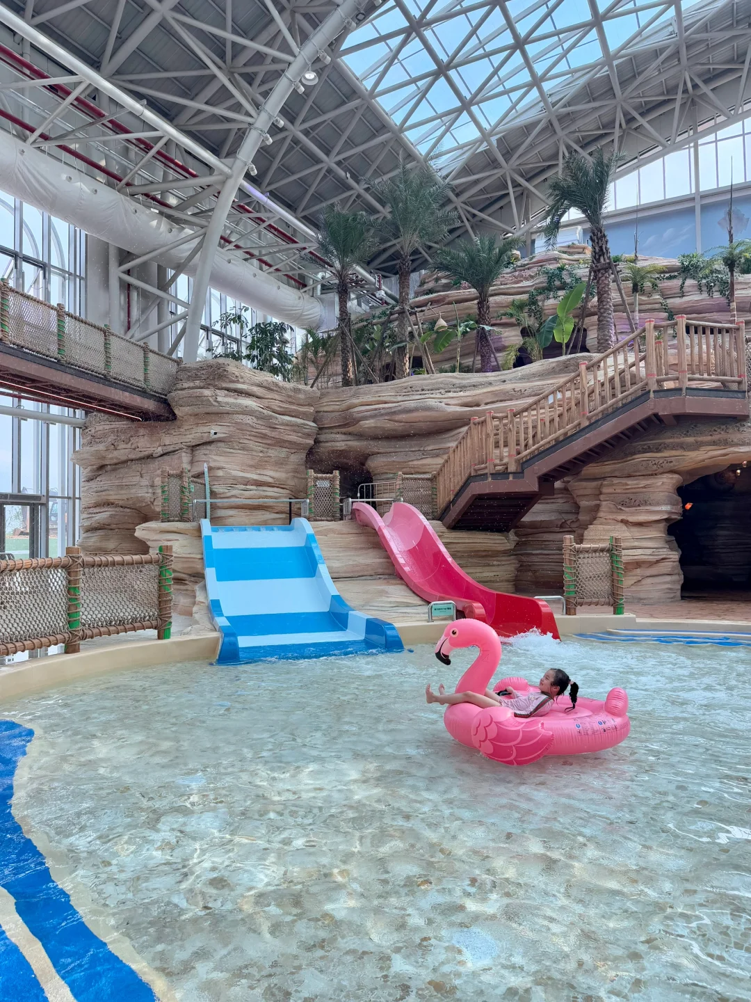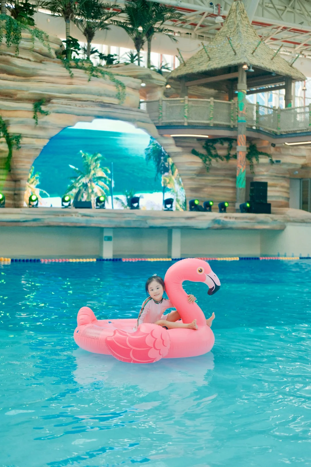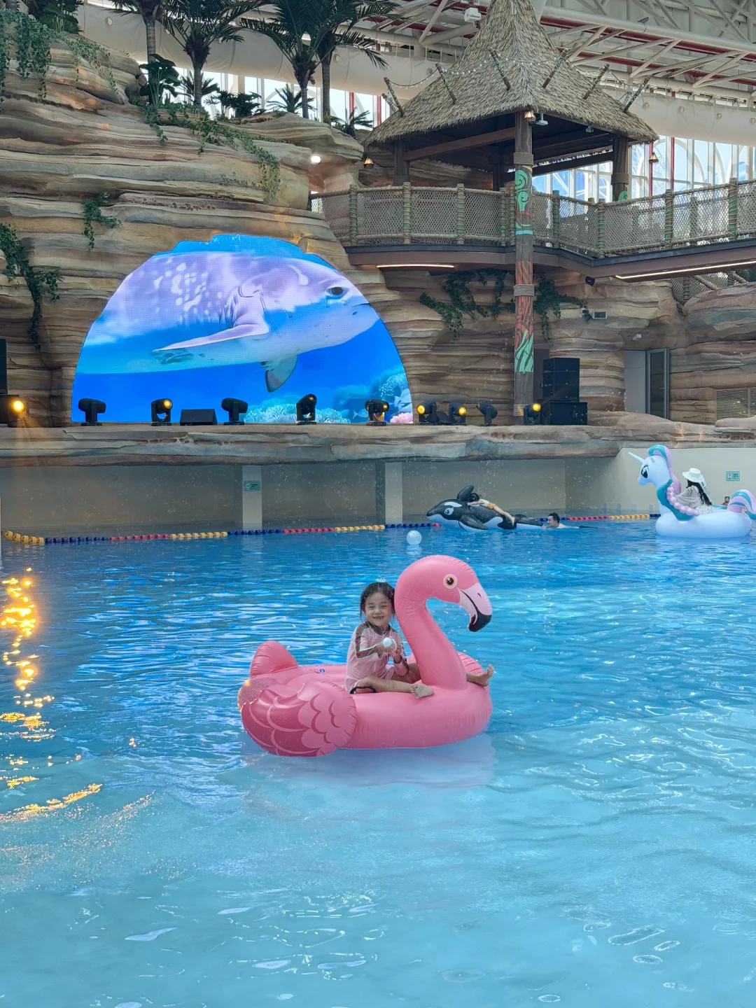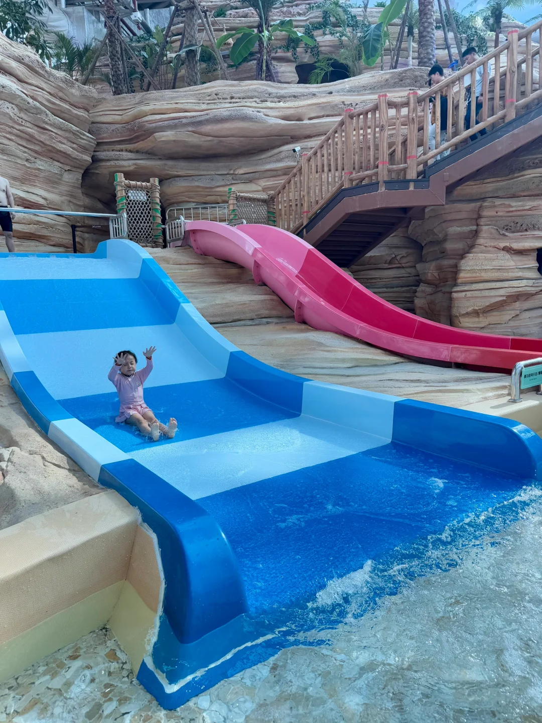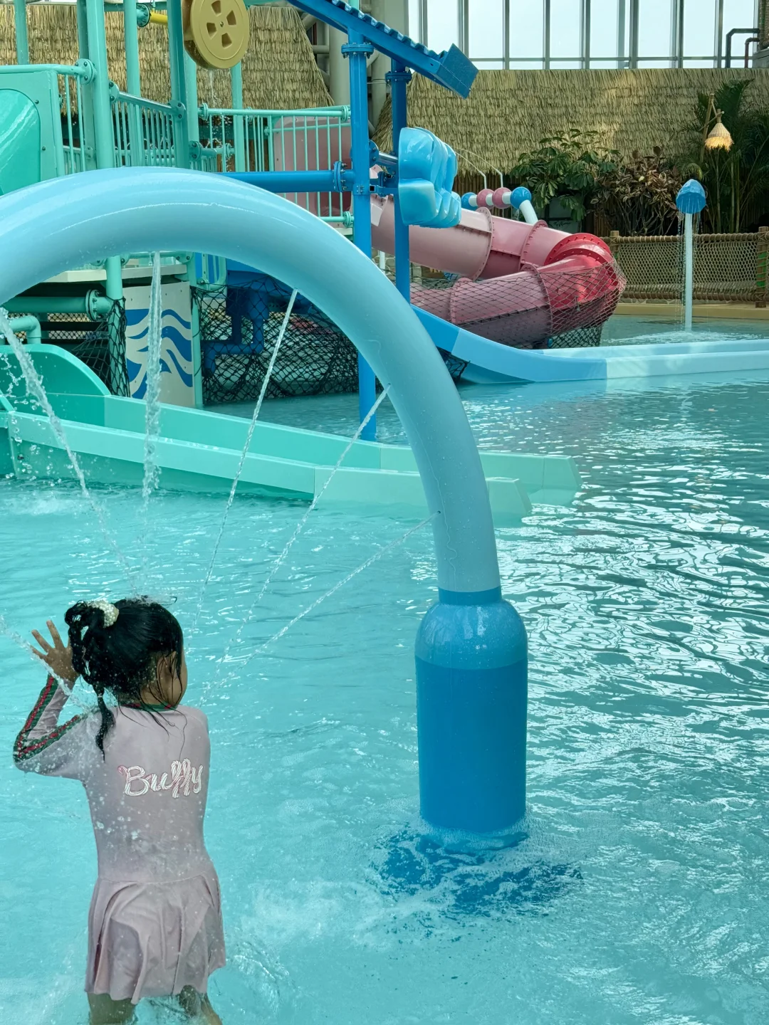 🌟室内恒温水乐园:四季恒温实现玩水自由,有很多水上💦游玩设施,造浪池,yiyi最喜欢水上玩滑梯了