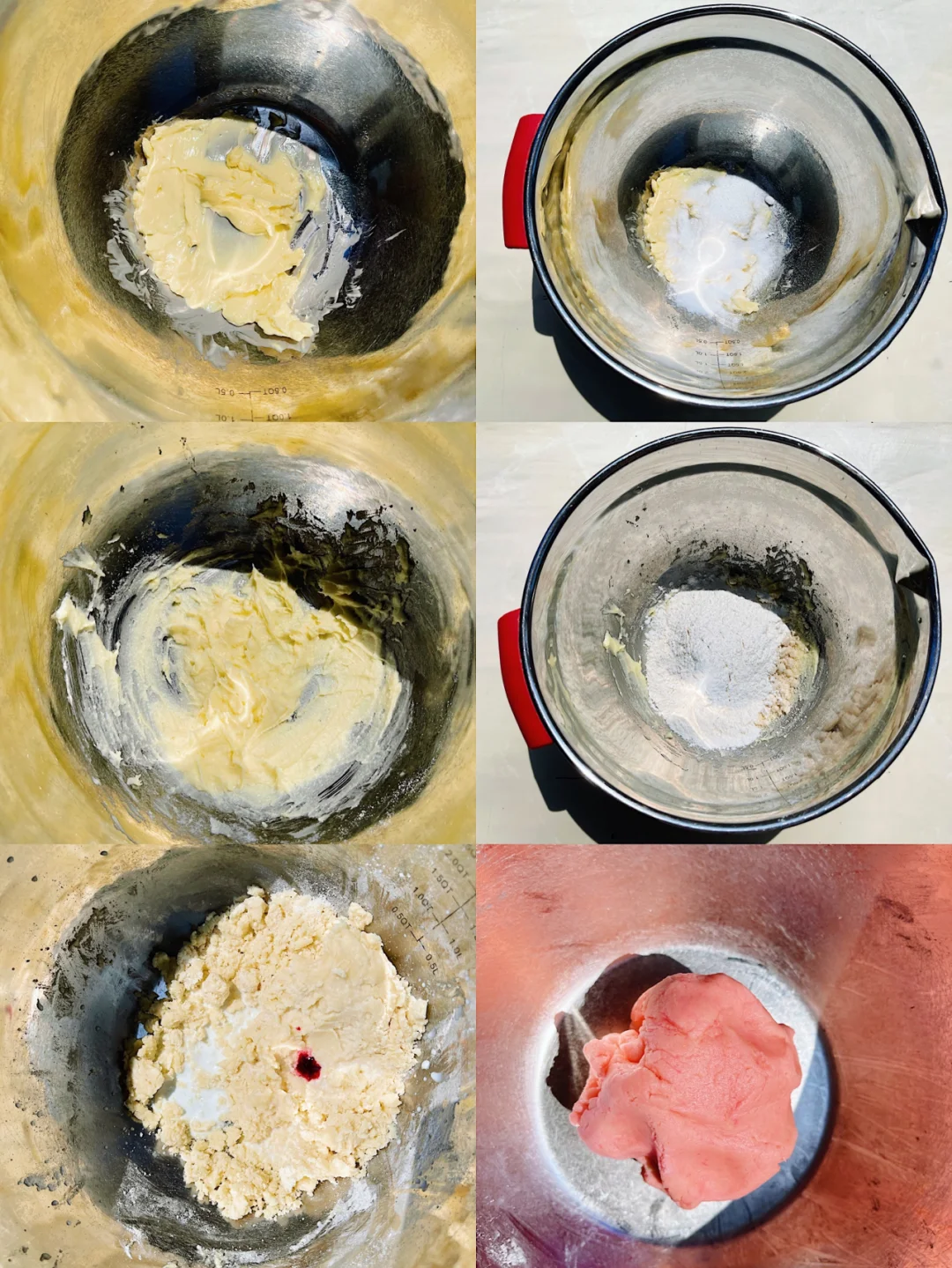 无盐黄油50g 糖粉20g 低筋面粉65g 杏仁粉25g 牛奶10g 盐1g 粉色食用色素2滴 盐渍樱花适量