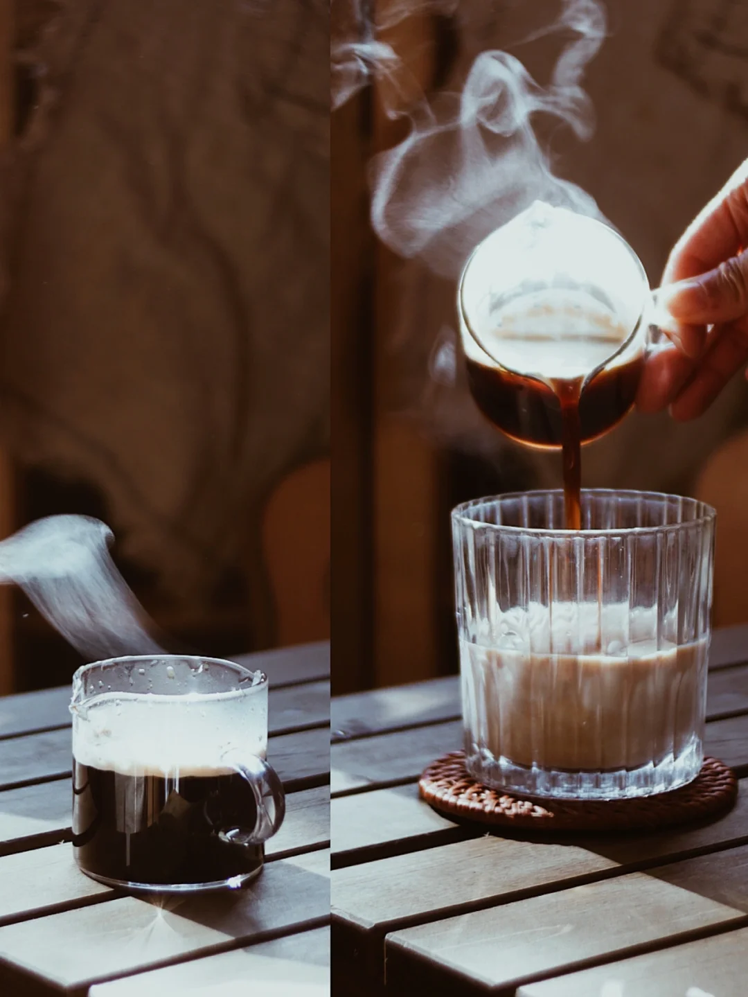 ©️依次倒入50ml百利甜酒,60ml苏格兰单一麦芽威士忌,100ml意式浓缩咖啡液,搅拌均匀
