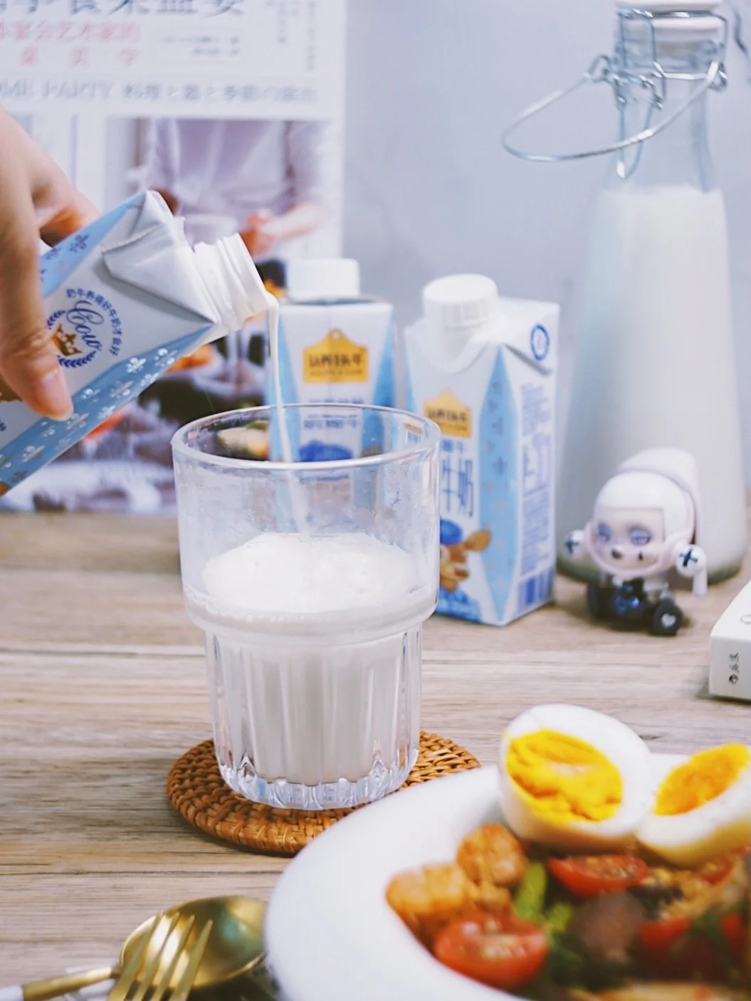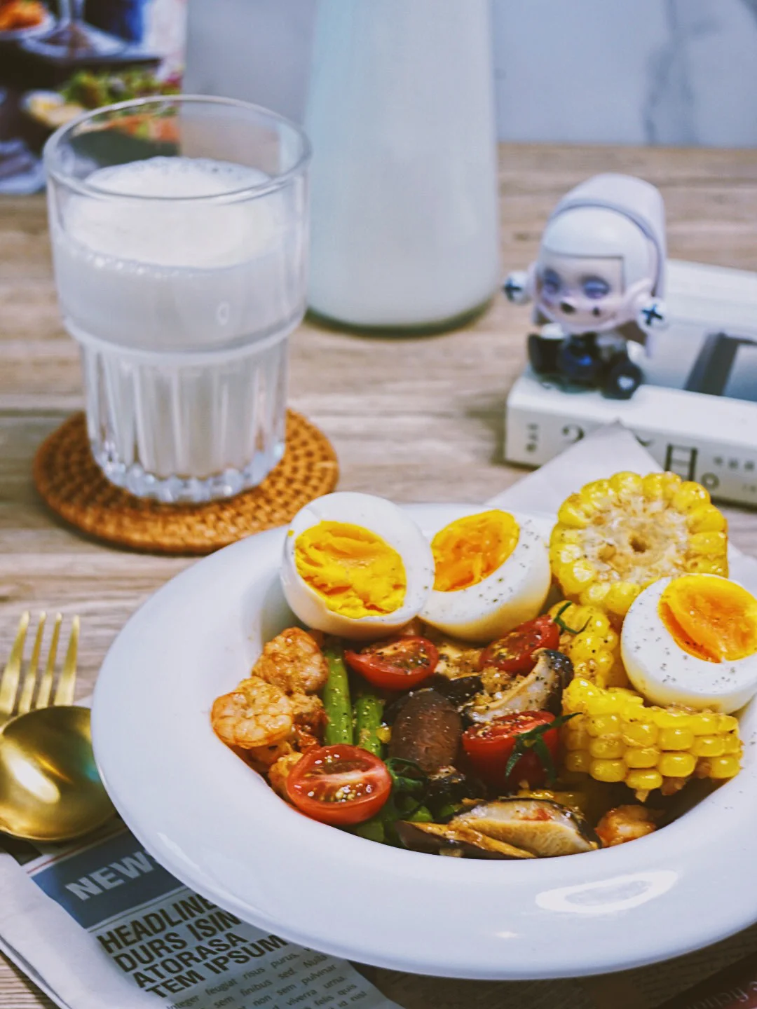 用高温焖出来的蔬菜,可以保留它原始的爽脆口感,营养也不会流失。鸡蛋🥚基围虾🦐也都是高蛋白的东西,就连平时喝的牛奶也是买的蛋白质含量比普通牛奶要高出hin多的认养一头牛的娟姗牛奶。