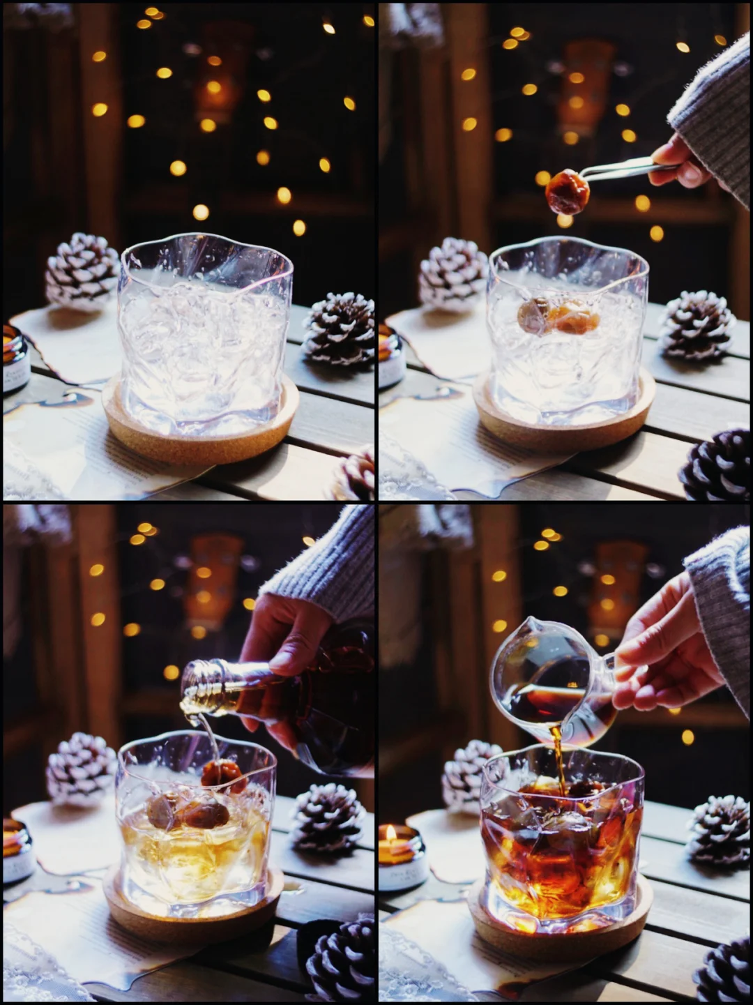 ©️冰块6块放在杯中,用吧勺搅拌至起雾