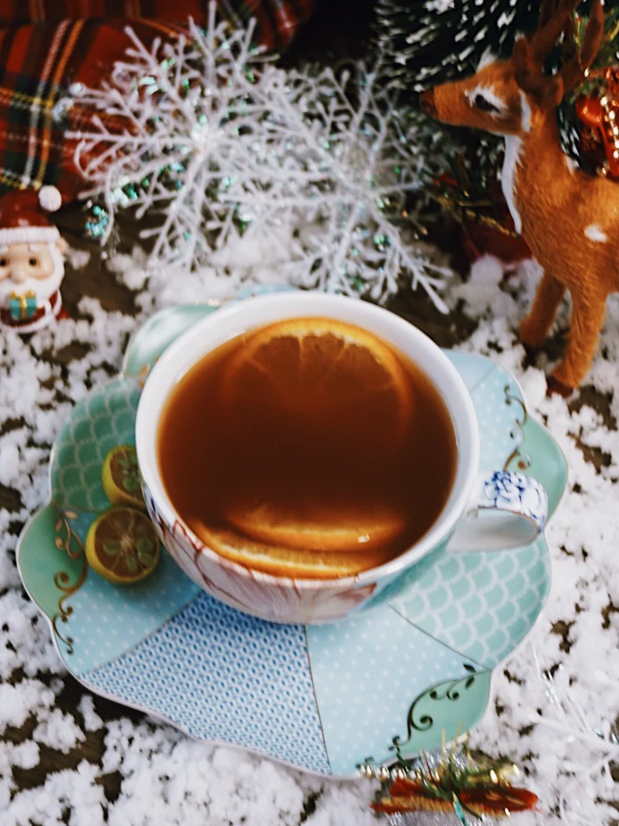 4️⃣煮好以后倒入杯中,放新鲜的橙子片或者柠檬片装饰