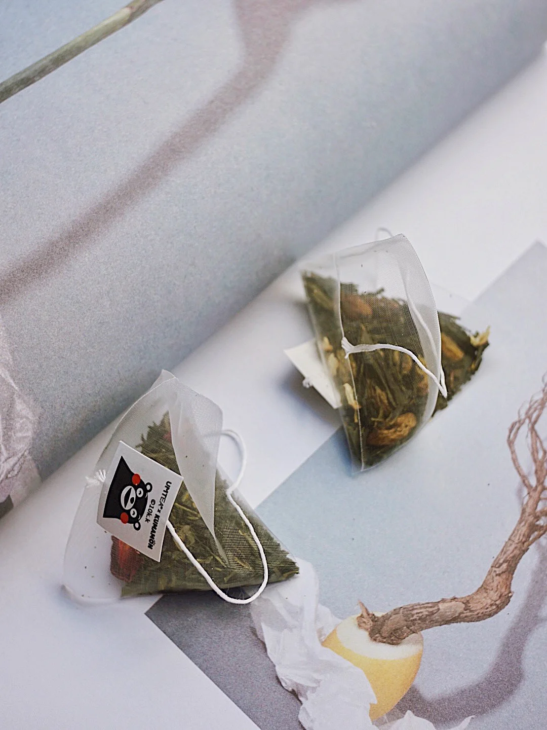 这个联名拼配茶礼盒,还有一罐白桃味的煎茶和一个纪念版马克杯。下午工作或者健身完以后,我也会直接把茶包放在杯子里冲泡,上面的熊本熊标签太戳中我的萌点了🐻这个杯子是双层保温保冷的,磨砂的触感,真的hin有质地。