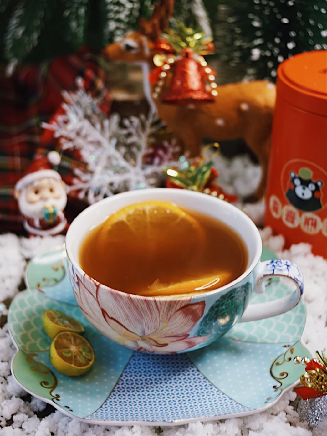 但是回到家里,摘掉围巾,喝上一杯暖呼呼的水果茶热饮,浑身都透着慵懒舒适。虽然到🇯🇵没有去成熊本市,成了小小的遗憾,但是𝐔𝐌𝐓𝐄𝐀优美茶和熊本熊的联名拼配茶礼盒,却是肯定要买的。这次用葡萄煎茶为基底,结合了柑橘类水果和姜片做了一份热饮🫖