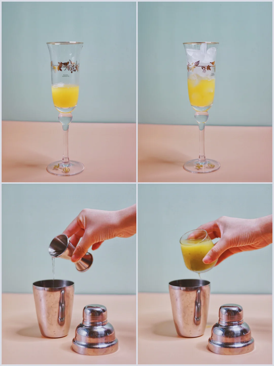 ● 先把猕猴桃去皮榨成汁,放入雪克壶里,在依次倒入朗姆酒、冰块,盖上盖子,一顿shake!