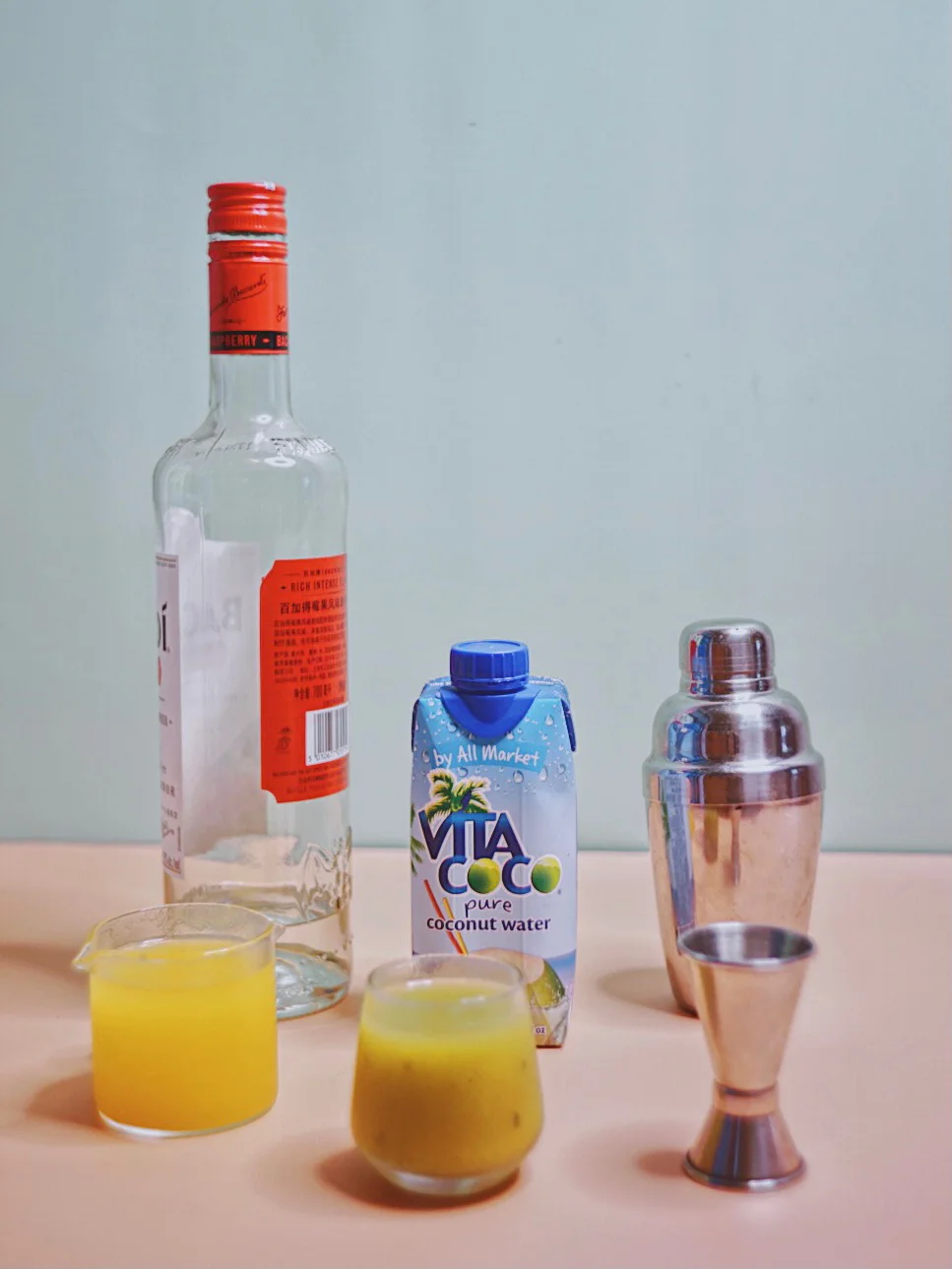 菠萝汁和猕猴桃汁都是鲜榨的🥝用来调酒的椰子水里有低GI果糖,所以我没有额外再加蜂蜜或者糖浆。可以喝到这杯鸡尾酒zui原始的味道。
