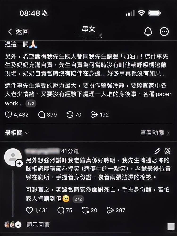 刷到香港火灾受害者家属的博文,眼泪一下没忍住。常年靠呼吸机、坐轮椅的老人,火灾时