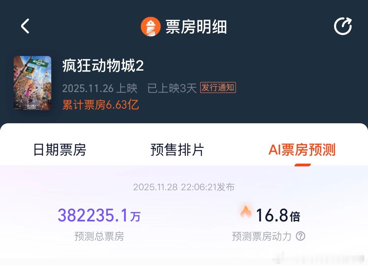 《疯狂动物城2》的预测双平台过30,后劲十足国产电影也别再说什么观众不入场了,最该反思的就是承认自己拍的难看,没有其他借口,技不如人就是技不如人。。。疯狂动物城 佳片奇遇季