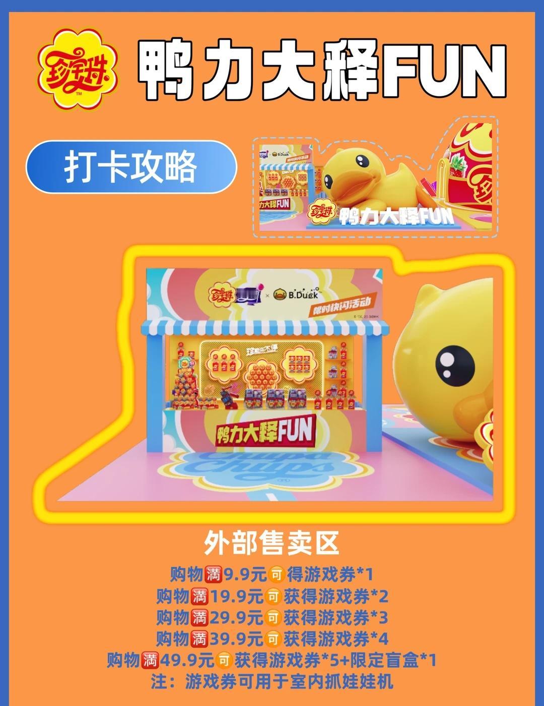 传下去!成都晶融汇珍宝珠×小黄鸭快闪来啦! · 一场巨好玩的解压快闪等你来打卡~ 珍宝珠联合B.Duck小黄鸭《鸭力大释FUN》快闪即将于11月21至23日限时登陆成都晶融汇🍭✨ 🔍打卡点全揭秘: ✅外部售卖区:先买点棒棒糖补充能量~还能Get 游戏券用于室内抓娃娃机 ✅幸运签:关注品牌账号🉐签抽奖🎟 ✅拍照打卡区:多巴胺配色,出片率100%! ✅品牌历史墙:Get珍宝珠品牌趣闻,这可是上过太空的棒棒糖,Logo也是艺术家达利设计的! ✅互动游戏区:打地鼠、抓娃娃机,玩游戏释放鸭力!成功打地鼠能拿贴纸哦~还有美图拍照打印区和黄鸭拍照区也不要错过,包好看的…🤩 🛍️必buy新品 重点安利珍宝珠大棒棒糖15支装!出片好搭子! 有好味:可乐+草莓+葡萄+布丁,秒回童年滋味,还有丰富VC!🤤 赶紧码住攻略,本周末约上搭子~ 一起来春熙路晶融汇释放压力、找快乐吧! 成都晶融汇 成都快闪 珍宝珠大棒棒糖 珍宝珠鸭力大释FUN