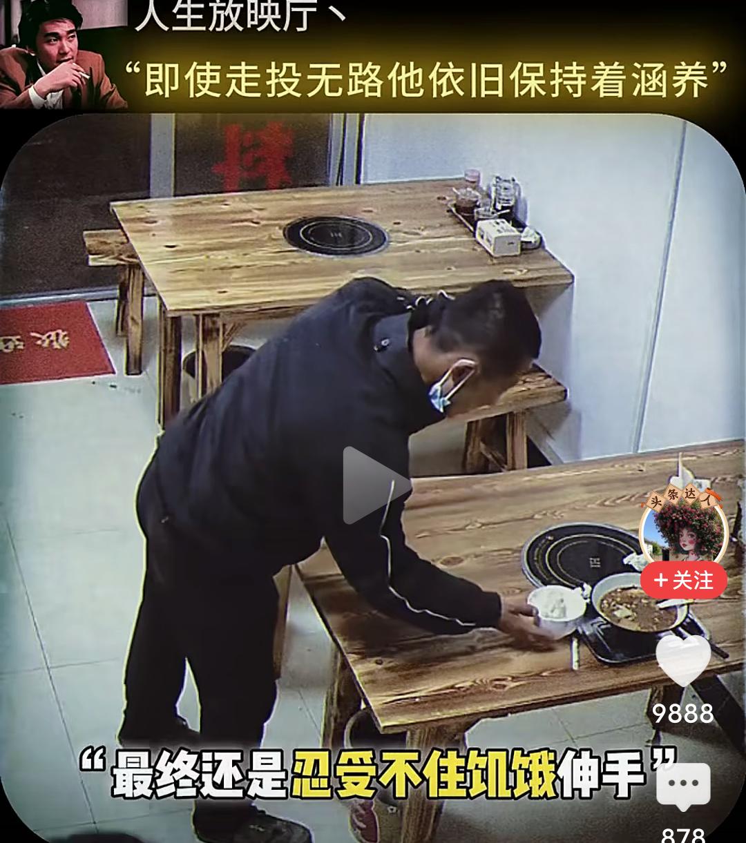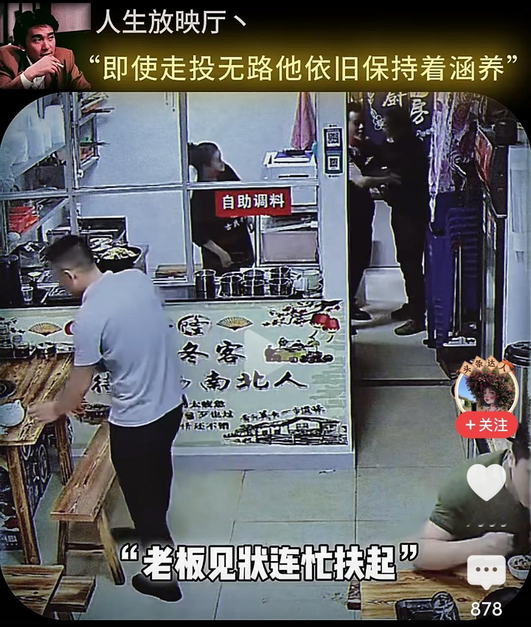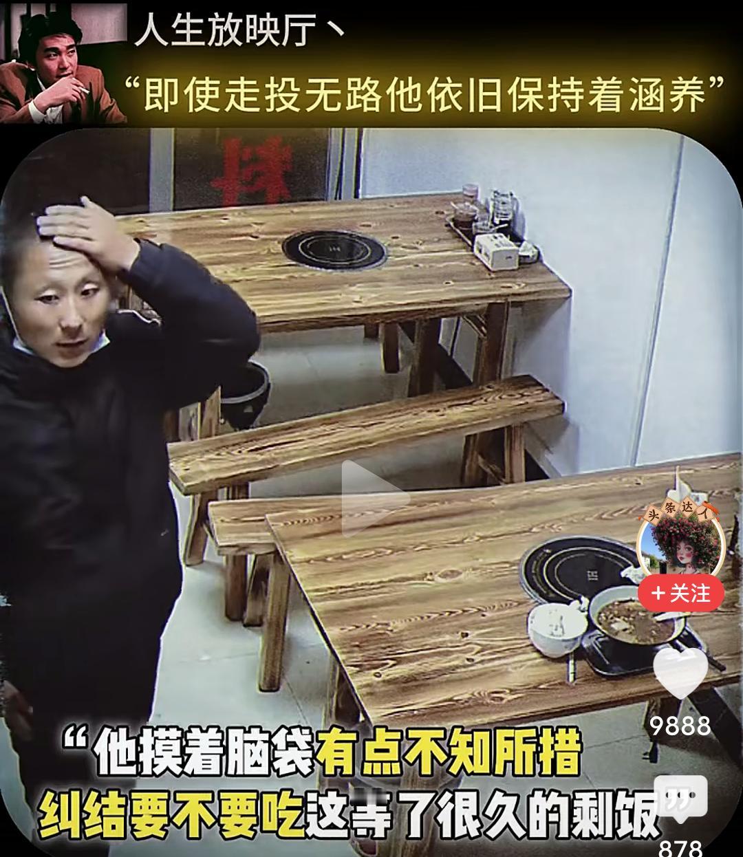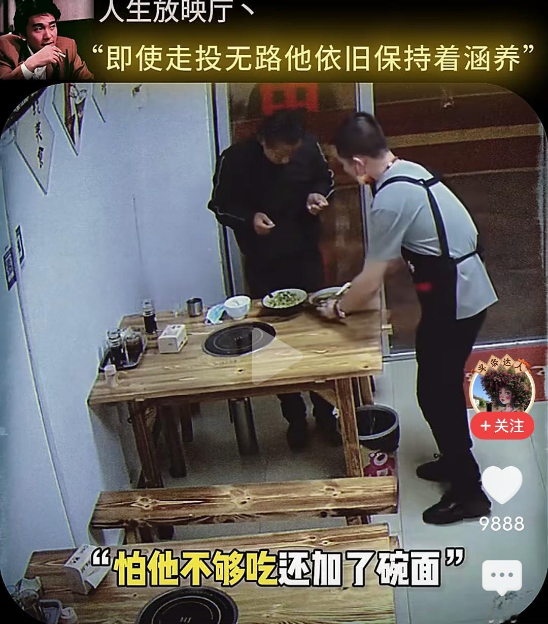 当男子跪下的那一刻,我眼泪流了出来…… 在一个小饭店,一位男子坐在角落很久也不点餐,小心翼翼的观察着对面吃饭的男人,直到对面的人结账离开,他才慢慢走上去,然后在那里摸着头纠结要不要吃这个人剩下的饭,最终还是忍不住饥饿去伸手… 而这个饭店老板早就察觉到他的异样,急忙上前拦住他,让他坐回去,表示可以让他免费吃饭,然后老板给他准备了一大份的牛杂汤和面,他边吃边擦拭着桌子,生怕弄脏了这里。 吃完饭他走到老板面前下跪表示感谢,老板扶起他后再次下跪感谢,准备离开时把地上的垃圾收拾干净,一步三回头不停的鞠躬感谢着离开…… 看的我是老泪纵横,如果不是生活太难,如果不是绝望的时候,他也不会让自己沦落至此,但即便走投无路,他依然保持着那份涵养。 他为什么会那么感激老板,因为老板拦住他不让他吃剩饭,并新做的那份面,那不仅仅是一份面,而是在落魄的时候仅剩的那一丝丝的尊严。 想一想,他也曾经被满怀期待的人十月怀胎,又视为掌中宝含辛茹苦,可到头来,很多的老实本分人终其一生,却混不到温饱,虽然,他也努力了。 一碗饭难倒一个英雄汉,如果有一天我也变成了吃饭这个男人的样子,请不要笑话我,因为我真的拿命搏过。 读了圣贤书,却管不了窗外的事,无数次想过自己开一家餐馆,有机会救助那些无家可归,无饭可吃的穷苦人,可事与愿违,自己活成了那个被救助的人。 唉,希望他能闯出来,人有品,人有格,愿他一切顺利安好!