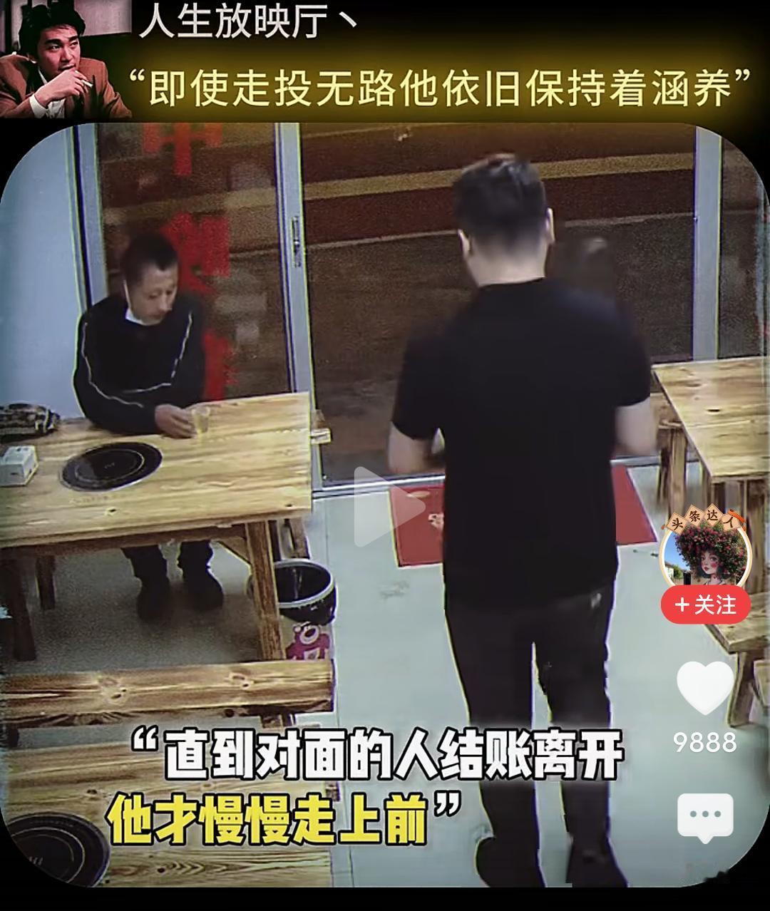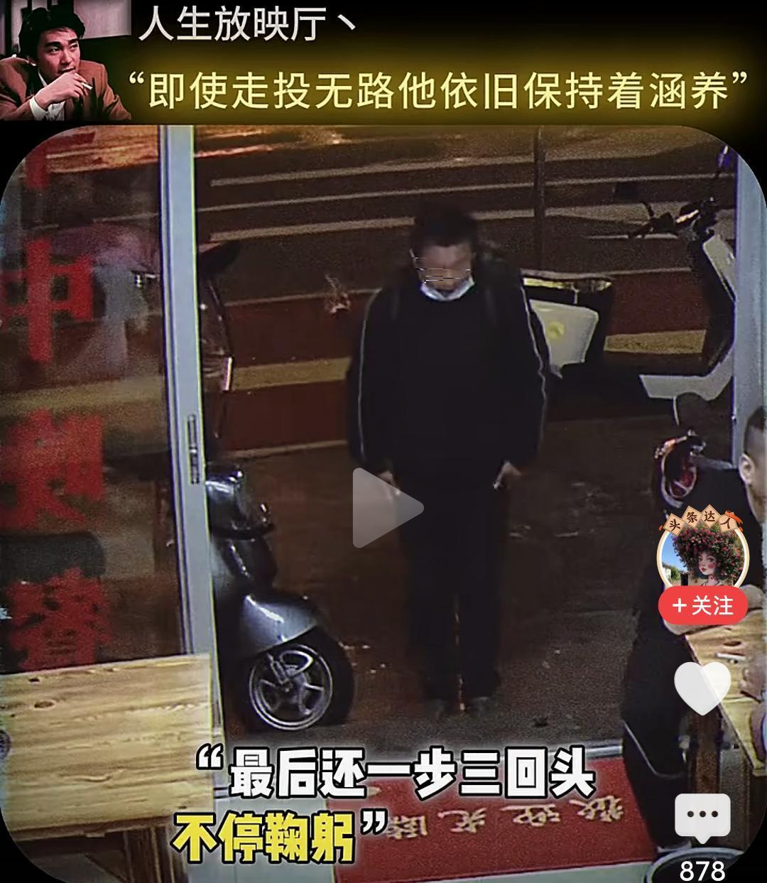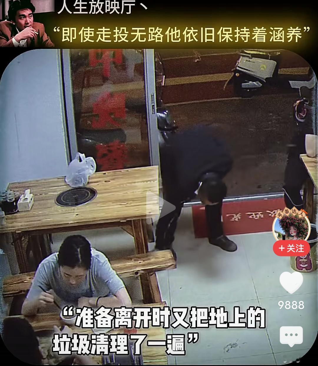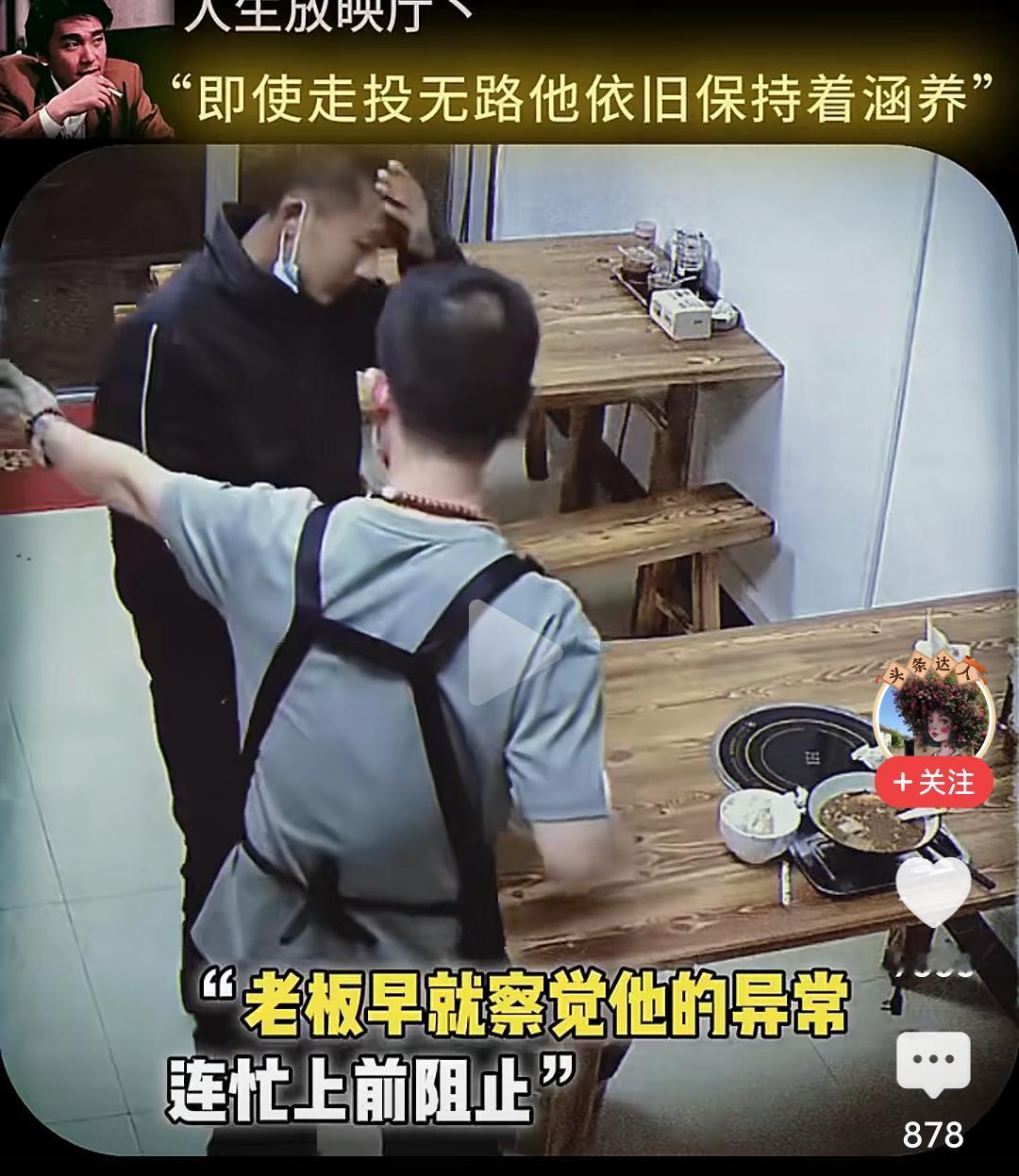 当男子跪下的那一刻,我眼泪流了出来…… 在一个小饭店,一位男子坐在角落很久也不点餐,小心翼翼的观察着对面吃饭的男人,直到对面的人结账离开,他才慢慢走上去,然后在那里摸着头纠结要不要吃这个人剩下的饭,最终还是忍不住饥饿去伸手… 而这个饭店老板早就察觉到他的异样,急忙上前拦住他,让他坐回去,表示可以让他免费吃饭,然后老板给他准备了一大份的牛杂汤和面,他边吃边擦拭着桌子,生怕弄脏了这里。 吃完饭他走到老板面前下跪表示感谢,老板扶起他后再次下跪感谢,准备离开时把地上的垃圾收拾干净,一步三回头不停的鞠躬感谢着离开…… 看的我是老泪纵横,如果不是生活太难,如果不是绝望的时候,他也不会让自己沦落至此,但即便走投无路,他依然保持着那份涵养。 他为什么会那么感激老板,因为老板拦住他不让他吃剩饭,并新做的那份面,那不仅仅是一份面,而是在落魄的时候仅剩的那一丝丝的尊严。 想一想,他也曾经被满怀期待的人十月怀胎,又视为掌中宝含辛茹苦,可到头来,很多的老实本分人终其一生,却混不到温饱,虽然,他也努力了。 一碗饭难倒一个英雄汉,如果有一天我也变成了吃饭这个男人的样子,请不要笑话我,因为我真的拿命搏过。 读了圣贤书,却管不了窗外的事,无数次想过自己开一家餐馆,有机会救助那些无家可归,无饭可吃的穷苦人,可事与愿违,自己活成了那个被救助的人。 唉,希望他能闯出来,人有品,人有格,愿他一切顺利安好!