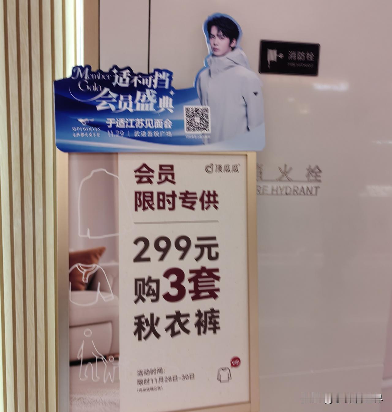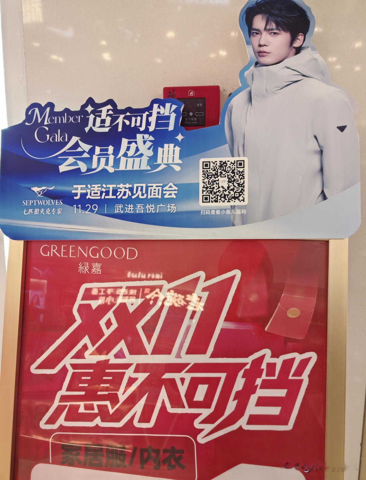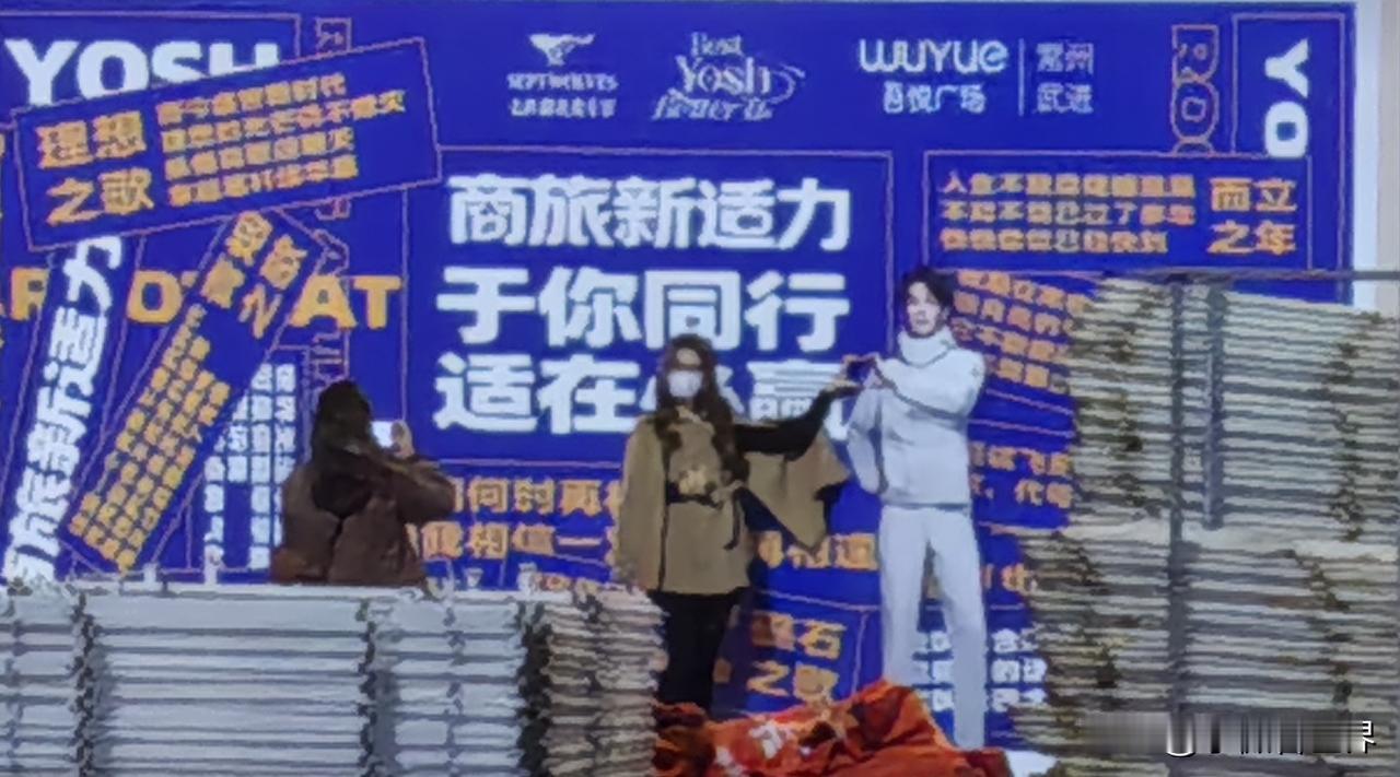 咦!怎么这里这么多于适的宣传海报? 走进吾悦广场,才知道29号就是今天有七匹狼于适见面会,“商旅新适力,于你同行,适在必赢”,主持人正在为适应场地做准备呢。 然后一路过去,看到不少于适的活动宣传照片。看来是万事俱备只欠东风啦! 甚至商场外面的宣传版前,还有美女正在和照片上的于适合影呢! 于适是凭电影《封神第一部:朝歌风云》里饰的姬发而一炮走红的,最记得他从城楼下纵身一跃而下飞身上马的镜头,真是太勇敢太帅了。 后来又因为电视剧《我的阿勒泰》里巴太一角而为人们熟知,于适将观众心中鲜衣怒马,英姿飒爽的少年形象,演得真实又具象,将男人该有的雄浑洒脱、阳光野性,完美展现。 所以如今作为七匹狼最新代言人,对于品牌年轻化和服装销售来说,是一个比较积极的信号。 今天,喜欢于适的人有福气了,可以去吾悦广场一睹他的风采哟。