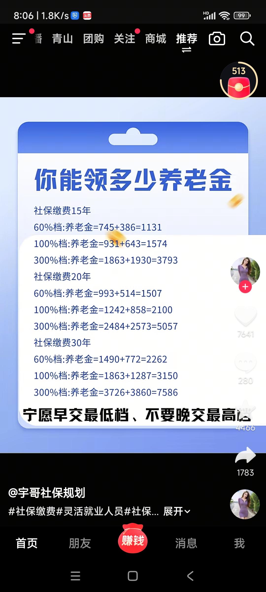 你相信社保多缴多得吗? 前一段时间我们在一起吃饭,大家说起了一件事情,有一个我们以前的女同事,她辞职以后干销售,做的非常大,营业额非常高,她挣得也很多。她自己按照灵活就业人员交社保,按照社平工资的三倍标准交的。我们知道,交社保可以选择按社会平均工资的60%和平均工资的100%,还有平均工资的300%去交,这样,按照多缴多得的原则,交的越多,退休的时候拿的工资也越多。 今年她正好是50周岁退休了,她以为她的退休工资能比别人要多一些多,结果核算下来,她的退休工资只比交普通档的人的工资多100块钱,她一年才比人家多拿1200块钱,而她这几年交费的时候要比别人多交好几万块钱,这么计算,也就是说她这么多年多交的钱,没估计到80岁以后才能拿回来!这个所谓的多缴多得,看起来不是那么靠谱的。