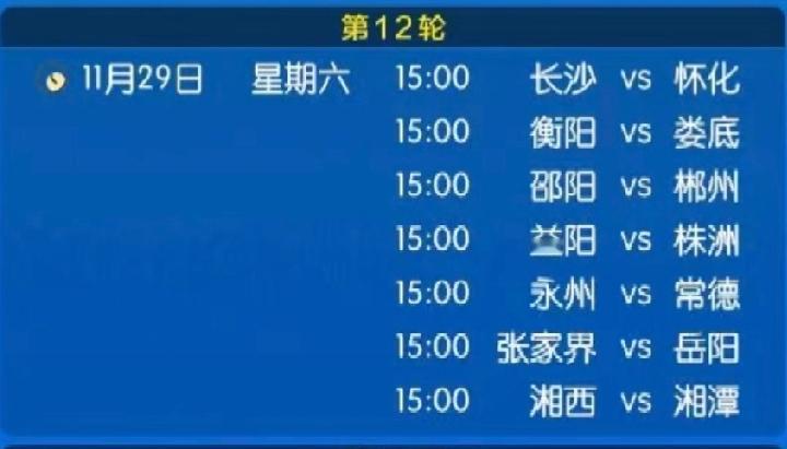 湘超第12轮的七场比赛今天下午15点同时开打,这跟前面的赛程还是有所区别的,前面的11轮比赛都会把7场比赛安排在周五周六周日分开举行。这应该更多的是为了比赛的公平性考虑吧? 明天的比赛,对于排名7、8、9、10位的郴州、益阳、岳阳、邵阳来说至关重要,都是不容有失,特别是后面的岳阳和邵阳,如果没有全取三分,基本可以说是无缘淘汰赛了。 大家看好哪两支球队最终晋级?