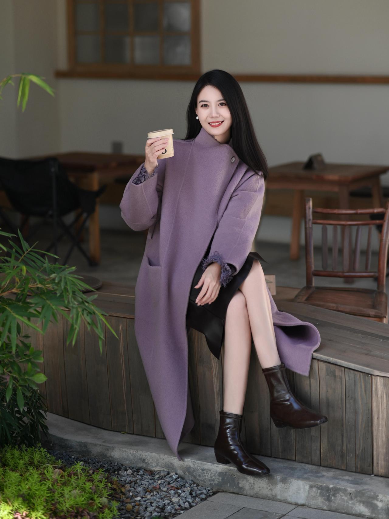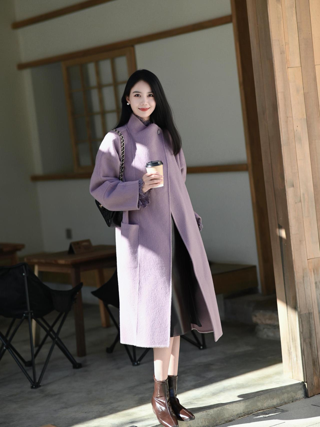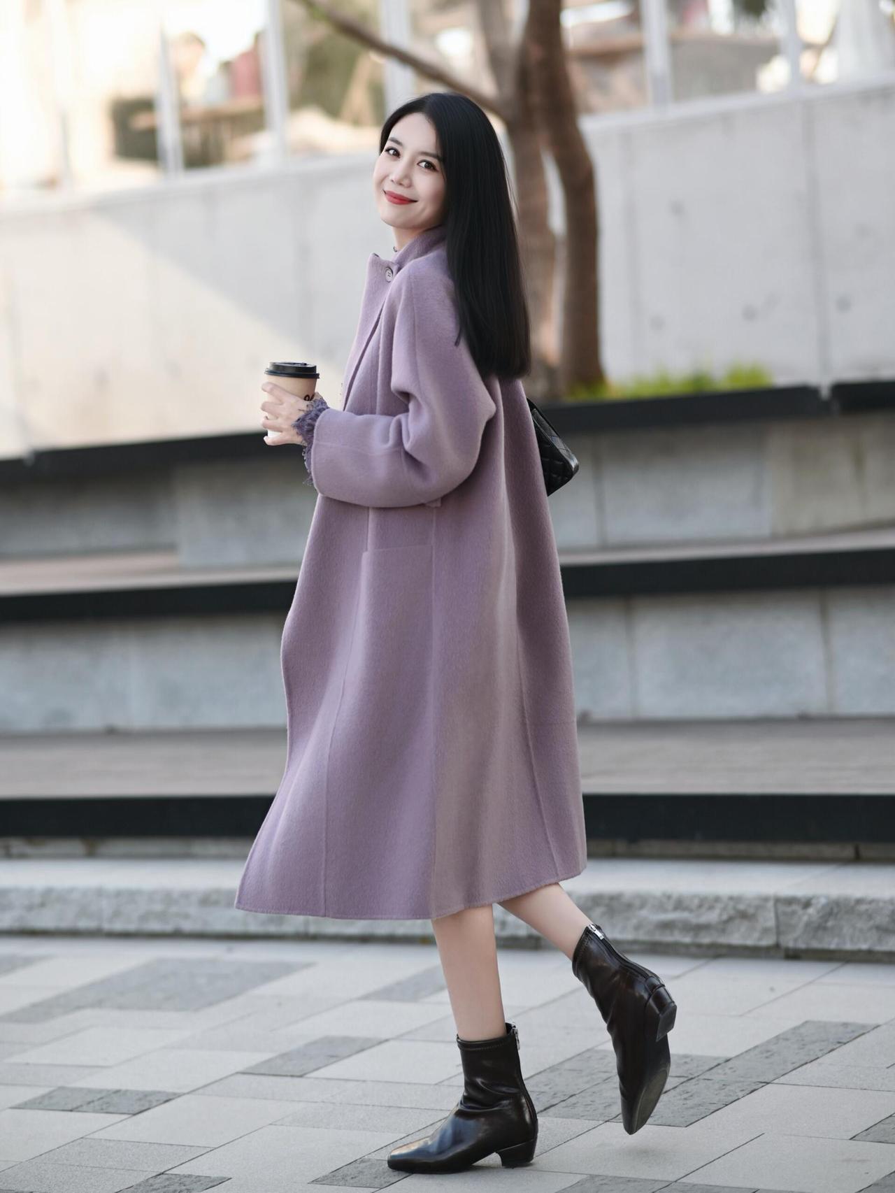 优雅紫大衣穿搭,咖啡相伴的温暖时光如何做个优雅高贵有气质的女人?