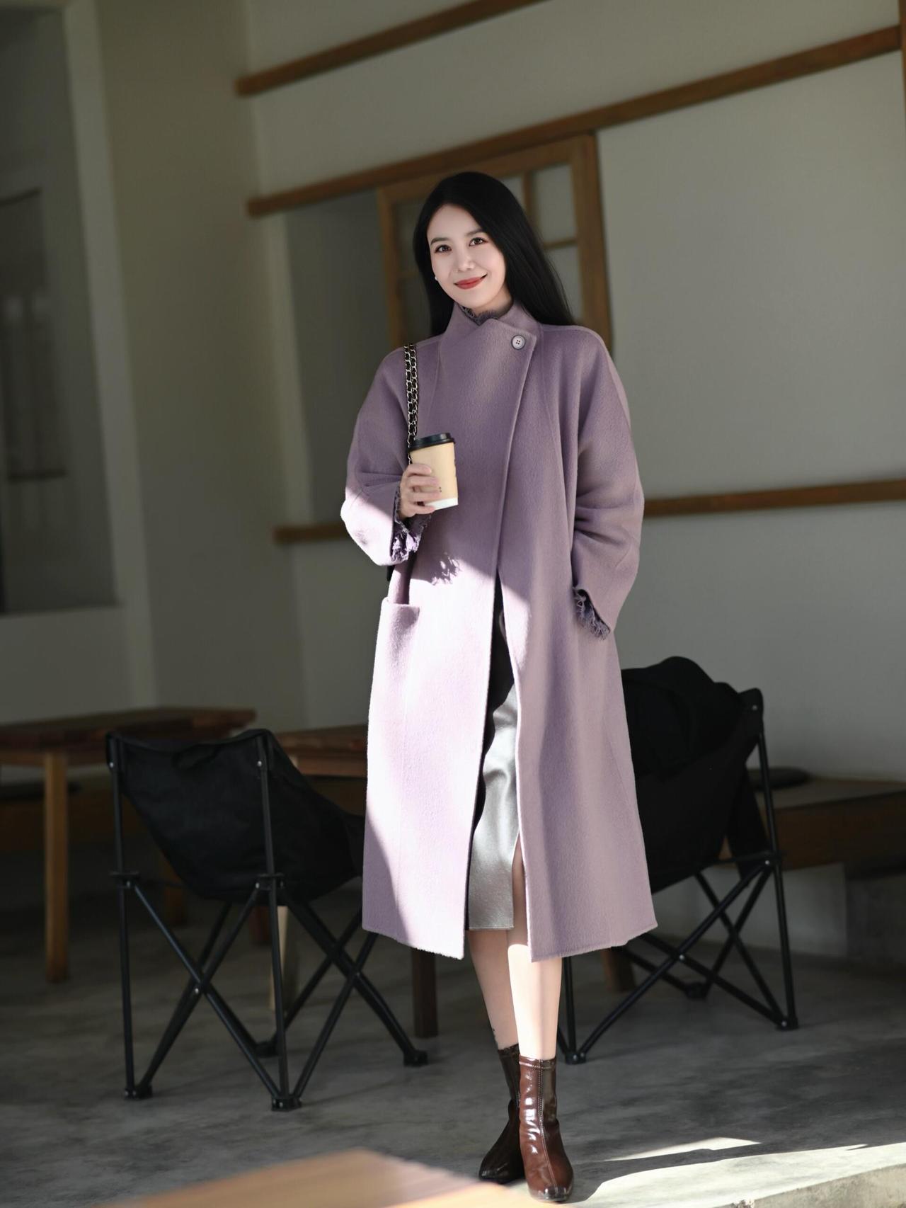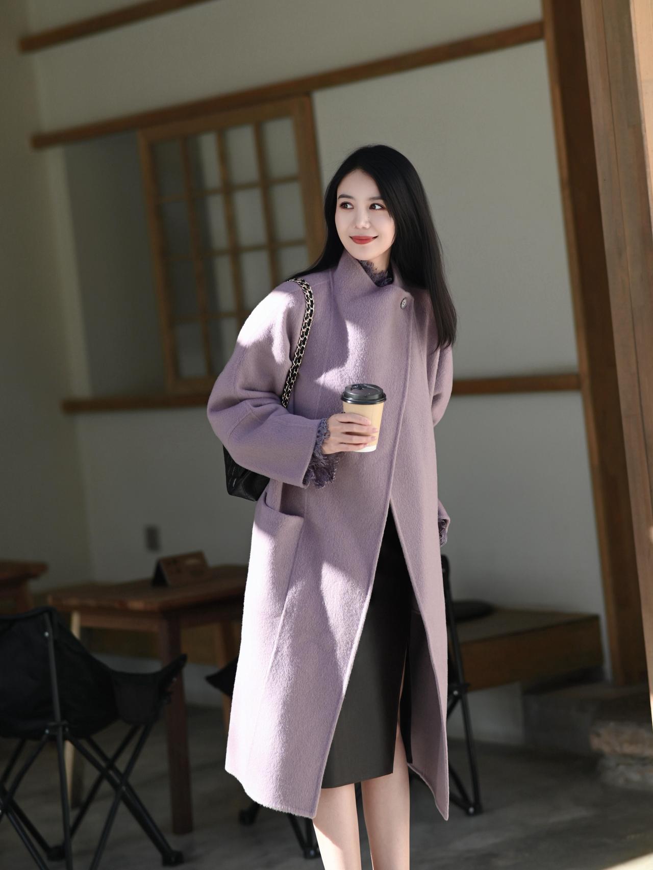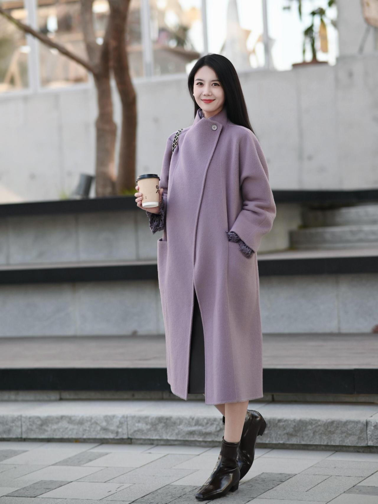 优雅紫大衣穿搭,咖啡相伴的温暖时光如何做个优雅高贵有气质的女人?