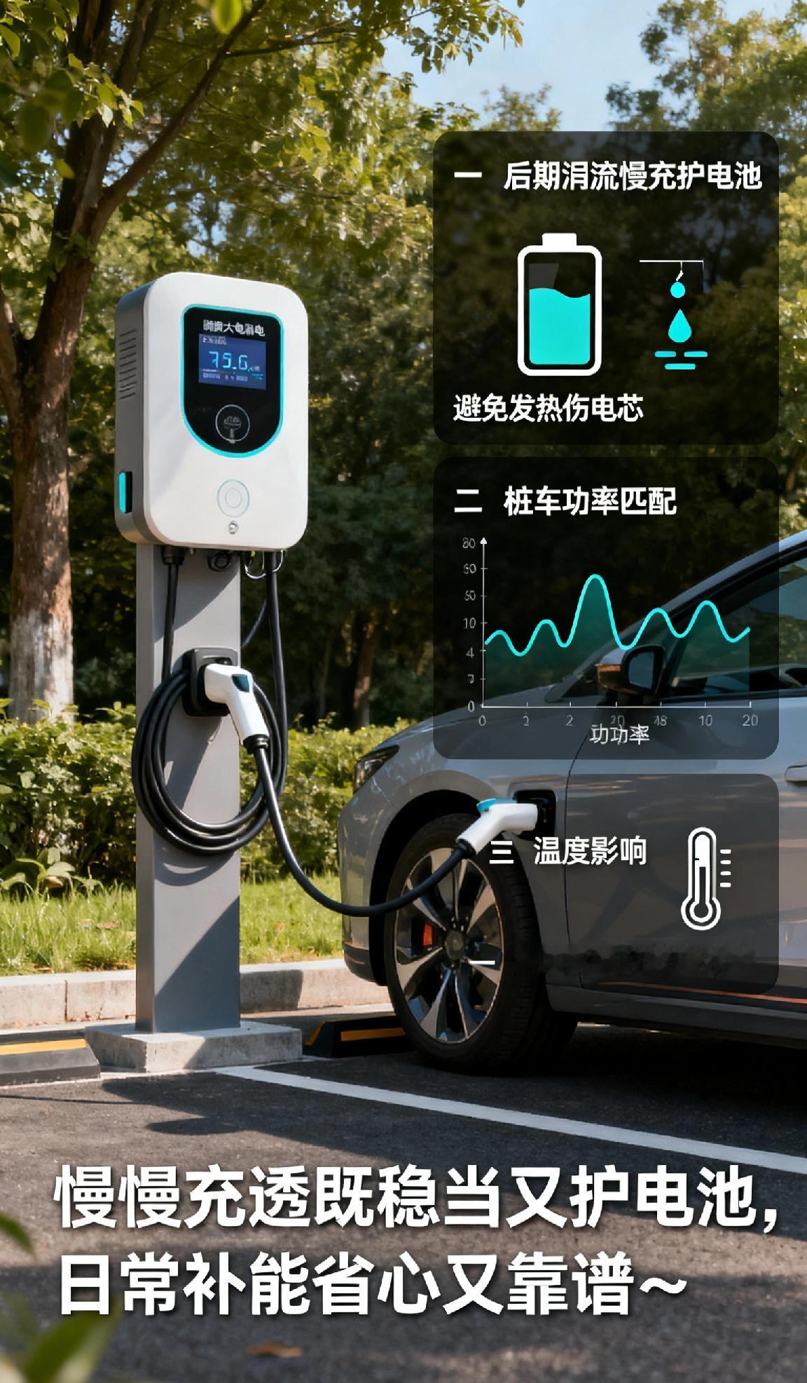 新能源车快充为啥多要一小时左右,前期大电流补电快,后期得涓流慢充护电池,避免发热伤电芯;再加上桩车功率匹配、温度影响,没法一直满功率充。慢慢充透既稳当又护电池,日常补能省心又靠谱~ 新能源车小知识 快充常识 用车干货