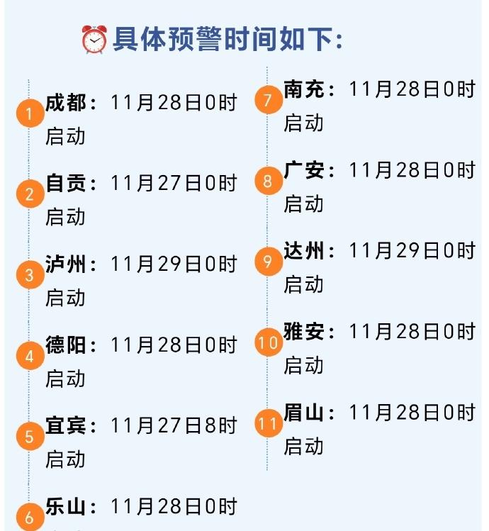 【紧急提醒!这11地已发布黄色预警】据最新预测,11月28日起,四川盆地将迎来一轮持续时间较长的污染过程,成都平原、川南及川东北部分城市有颗粒物轻度至中度污染风险。为最大限度减少污染物累积,降低污染程度,成都、自贡、泸州、德阳、宜宾、乐山、南充、广安、达州、雅安、眉山已陆续启动重污染天气黄色预警。生态环境保护 网页链接
