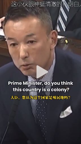 “很遗憾,我认为现在的日本就是一个殖民地,请问大臣高市早苗,你认为这个国家是殖民地吗?”