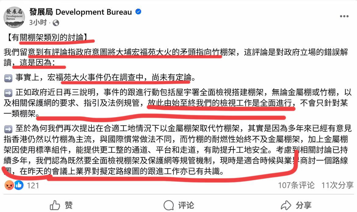 竹子搭建的脚手架,确实该退出历史舞台了! 这次火灾造成巨大的人员伤亡和财产损失,事故原因当然是综合的,但我个人觉得这不是天灾,主要还是人祸!! 竹棚架是不是首要原因,这个我不敢乱说,但是一个主要原因,这个是没问题的,如果不是竹子搭建的,而是像大陆一样,用钢管打架脚手架火灾会有这么惨烈,相邻的几栋楼就不会被大火波及,这个质疑有什么问题吗?我想他们跳出来反击,正好说明了问题所在!这种落后几十年的东西为何还要存在,保留传统,就是要让大众付出生命代价吗?这难道不是资本,既得利益者垄断所为吗?香港,很多方面确实落后了,他们真的该好好反思了,不是吗,你觉得呢?