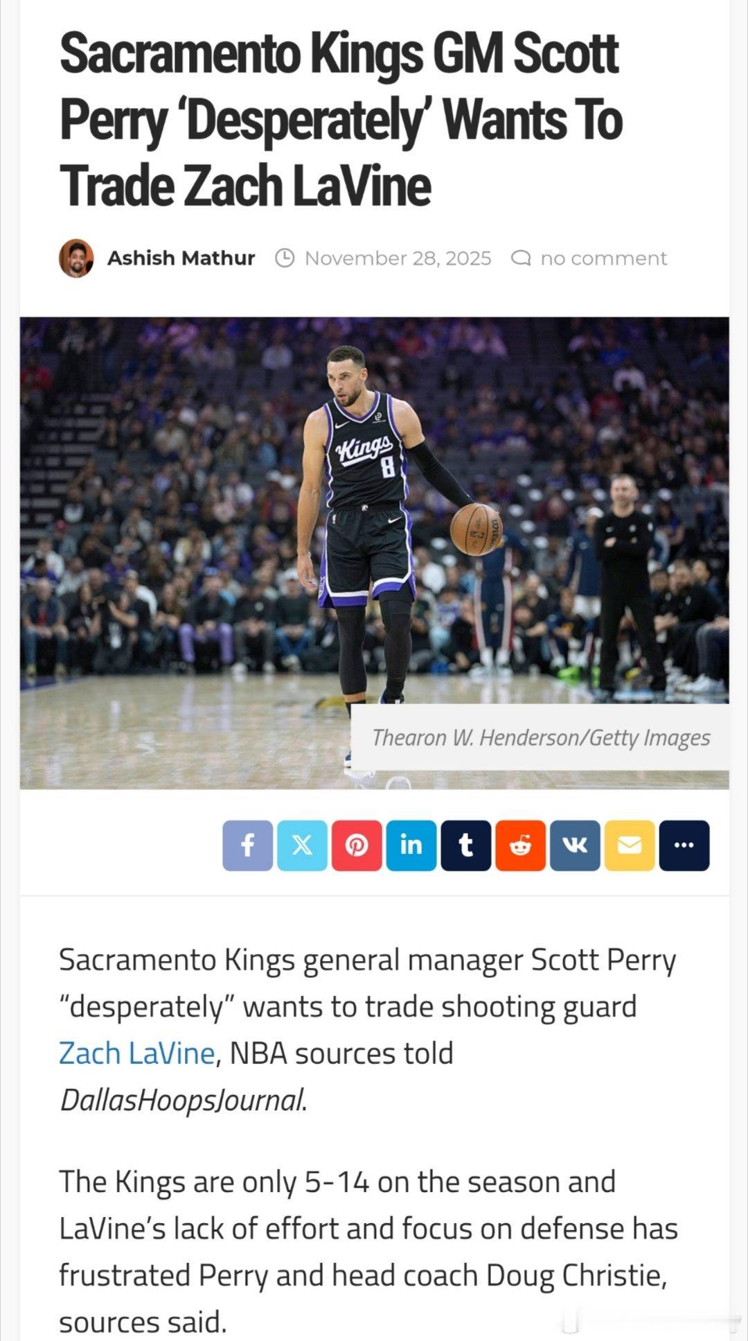 Ashish Mathur:国王总经理“迫切地”想要交易拉文。国王队本赛季仅有5 胜14负,拉文在防守端缺乏努力和专注度,让总经理斯科特·佩里和主教练道格·克里斯蒂感到沮丧。