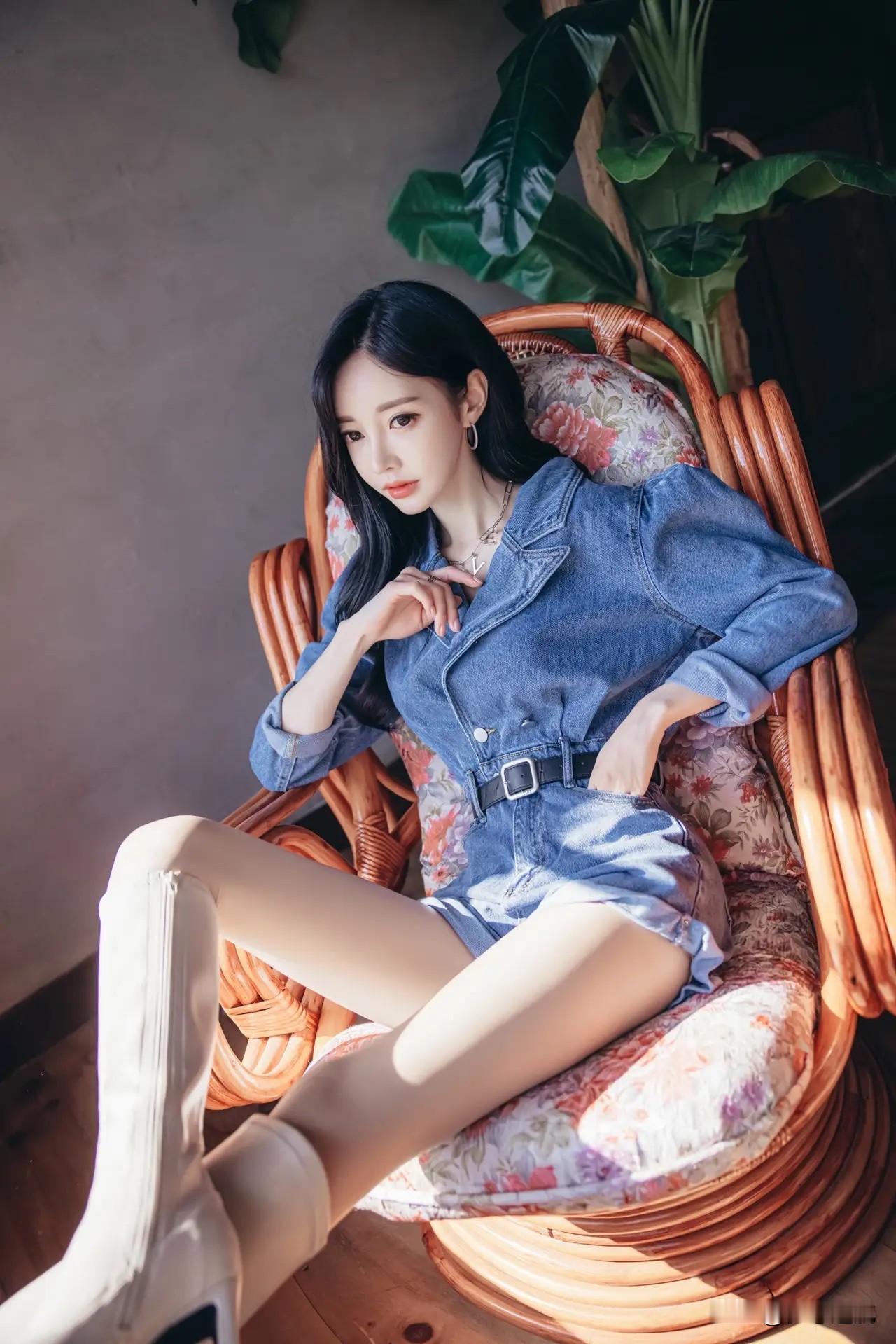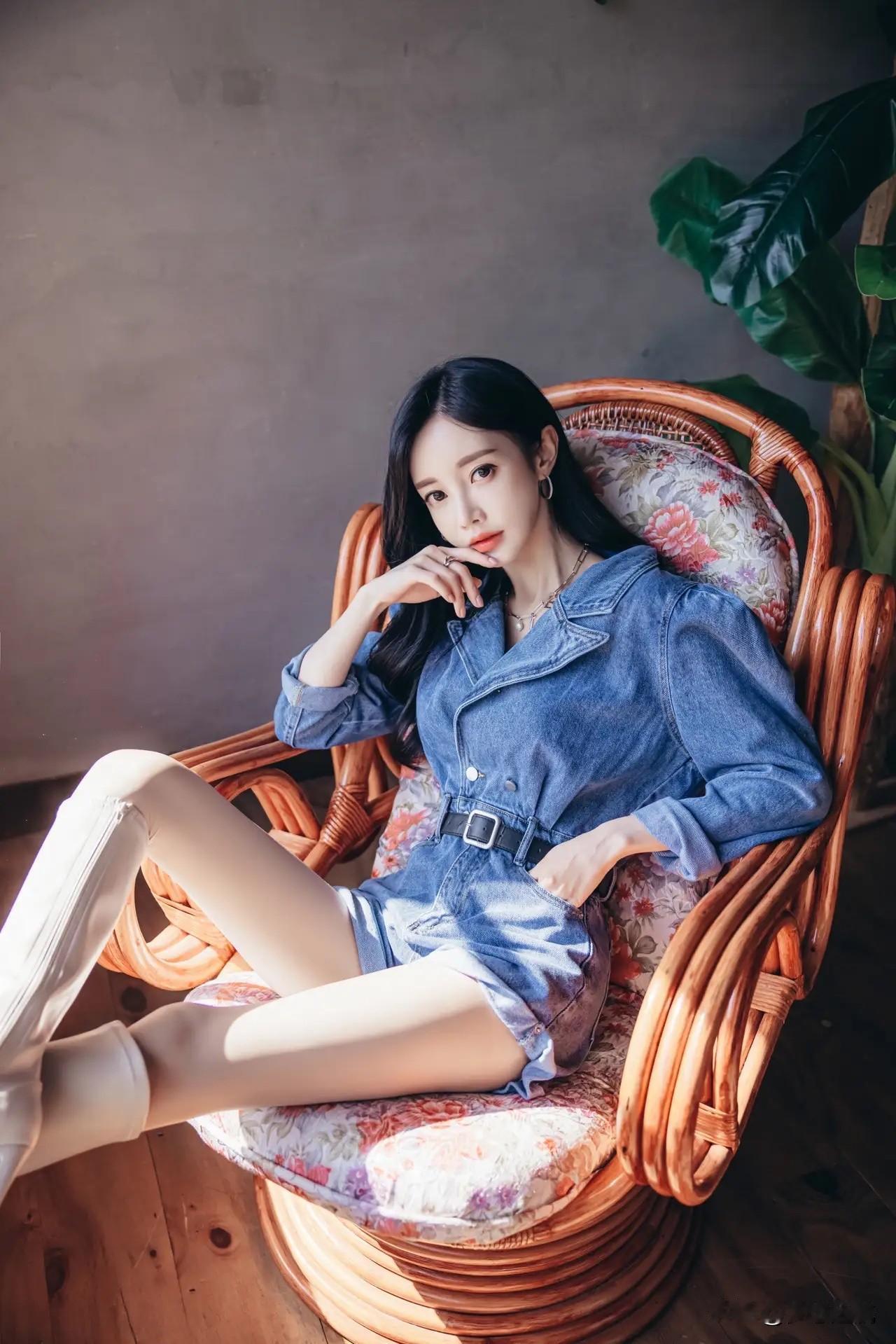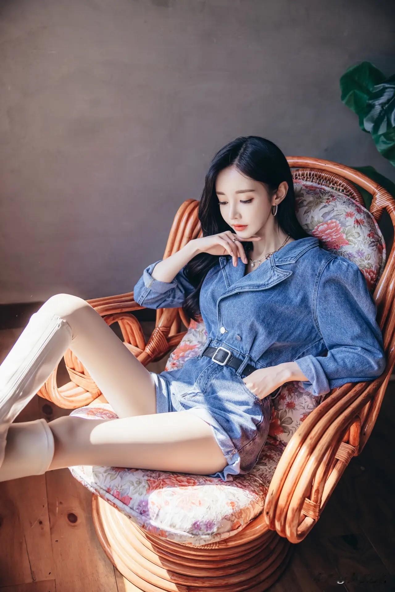 复古牛仔穿搭,甜美少女心,元气满满!孙允珠 孙允珠极品美图 模特 长腿控