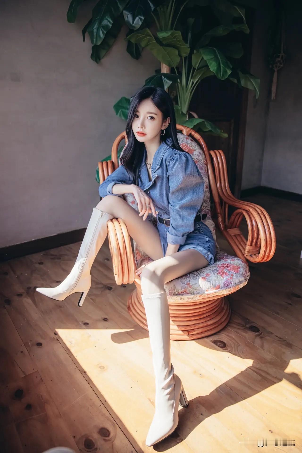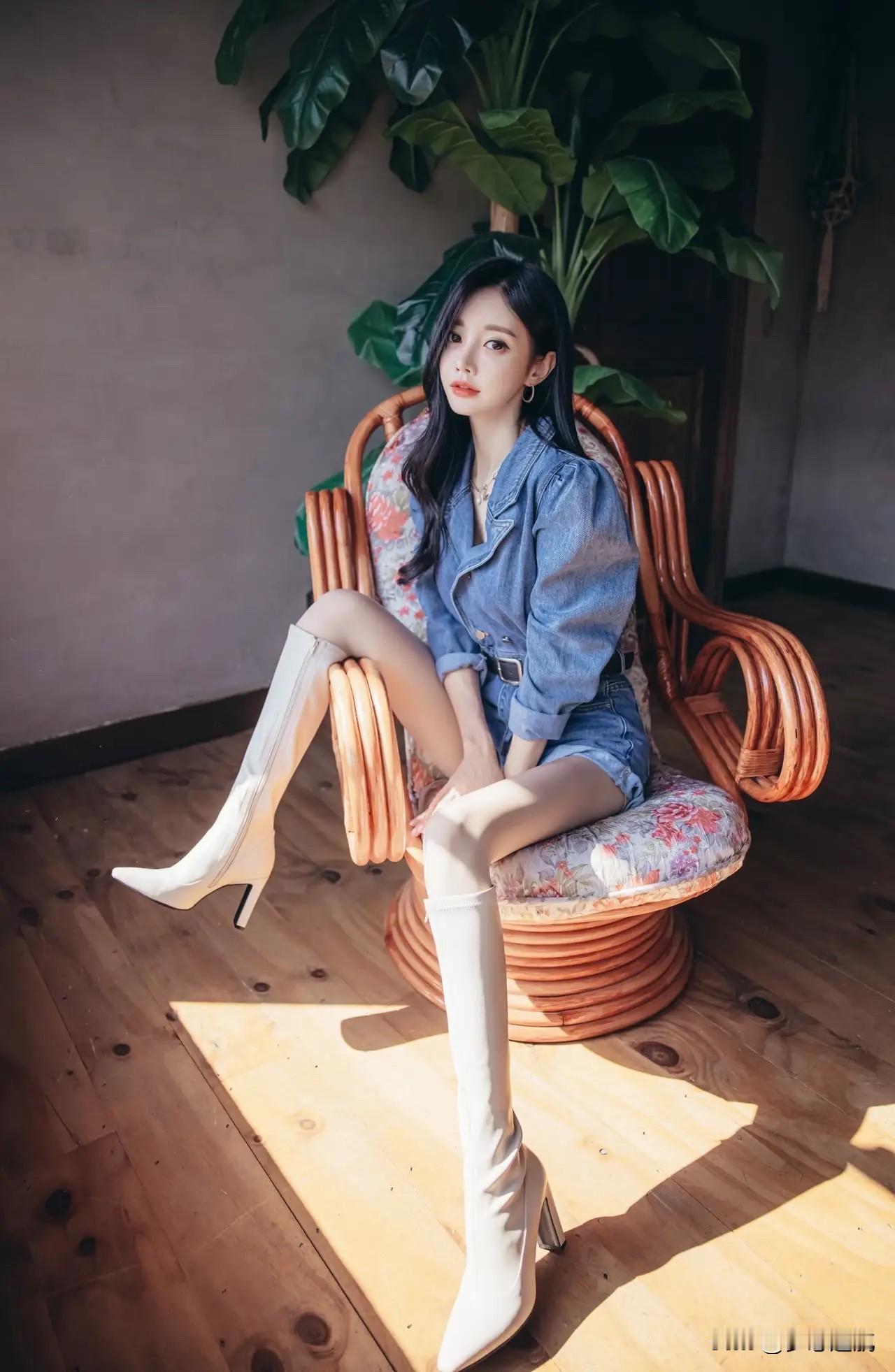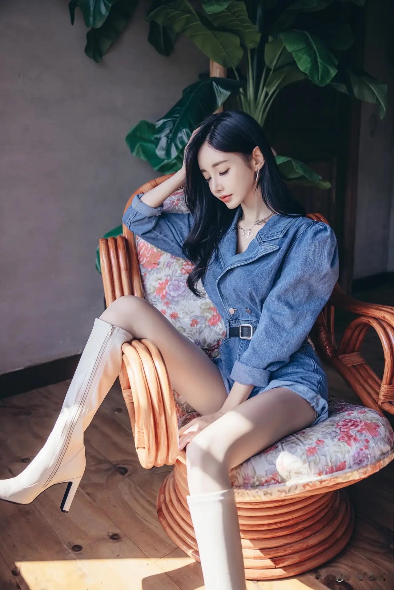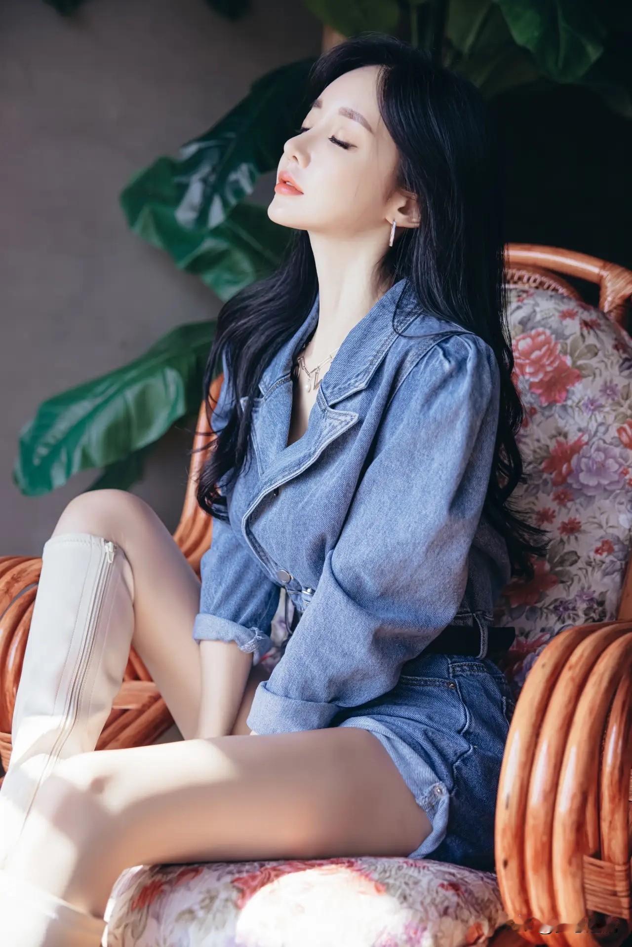 复古牛仔穿搭,甜美少女心,元气满满!孙允珠 孙允珠极品美图 模特 长腿控