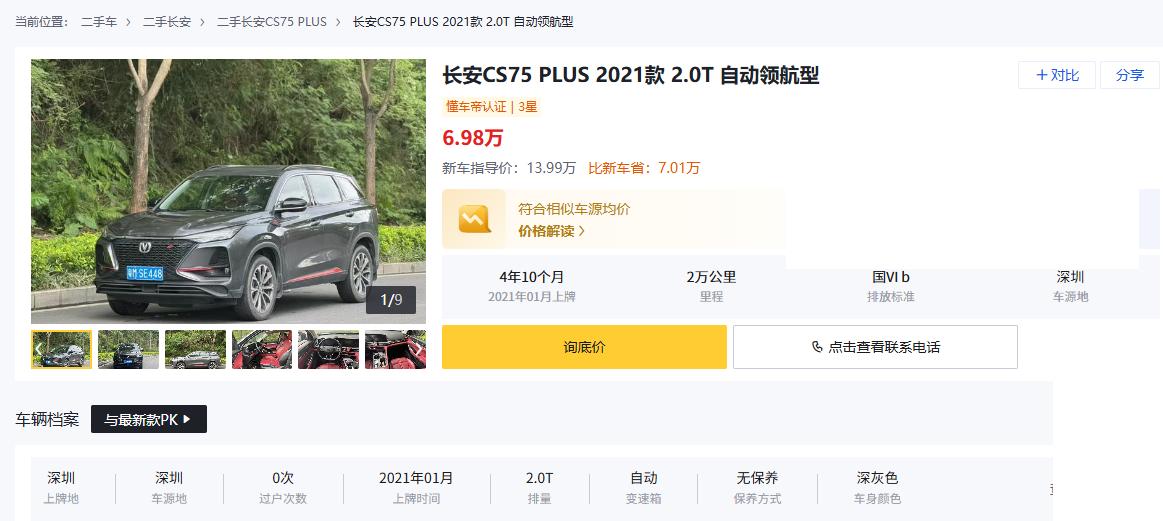 车友们注意啦!今天咱们聊聊 二手长安CS75 PLUS怎么买,市场行情到底咋样?往下看。 二手长安CS75 PLUS,这车二手市场挂牌价大概在 5万到11万左右,2020到2022款是相对活跃的车源,性价比高。例如长安CS75 PLUS 2021款 2.0T 自动领航型,行驶2万公里,二手成交价在 6.98万左右,比当年新车足足便宜七八万,空间、动力、配置都够用;还有里程低、配置高的2021款或者2022款,挂牌价在 7到9万之间,车况好的同样受欢迎。 不过也要注意,低价陷阱不少。市场上有的5万左右车源,看似便宜,但往往里程高、保养不全,甚至有事故或泡水历史,这种车虽然价格低,但后续维修成本高,所以买二手CS75 PLUS,核心就是看车况、看里程、看保养。 挑车的时候,优先锁定 2020到2022款、低里程、正规保养、无事故车。发动机和变速箱是重点,尤其是2.0T车型,要检查有没有漏油、顿挫或者异响;底盘和车身结构也要看看,别图便宜碰到问题车。价格上,靠谱的低里程车一般落在 6.5到9万区间,这个价位车况稳,配置够用,空间大,家用完全够。碰到车况有小瑕疵的,可以适当议价 5%到10%,比如里程稍高或者年份稍老的版本,这样能拿到更划算的价格。 咱们来聊聊适合人群。你如果平时偏好新能源,但更看重空间、家用和通勤,CS75 PLUS其实很合适。后排空间充裕,座椅舒适,长途开起来也不累;配置上,顶配车型有全液晶仪表、大屏中控、自动空调、全景天窗,日常用起来比同级别新车体验还香。而且动力够用,2.0T加6AT或者8AT变速箱,城市通勤、周末自驾都轻松,油耗控制在 8-9L/100km 也能接受。 所以,如果你预算10万左右,想入手一台空间大、配置够、家用和通勤都能用的SUV,锁定2020-2022款低里程、车况靠谱的CS75 PLUS,还是比较稳妥好用的。那么,你入手二手CS75 PLUS比较关注什么?里程?车况?还是价格?评论区聊聊你的选择!【来自懂车帝车友圈】