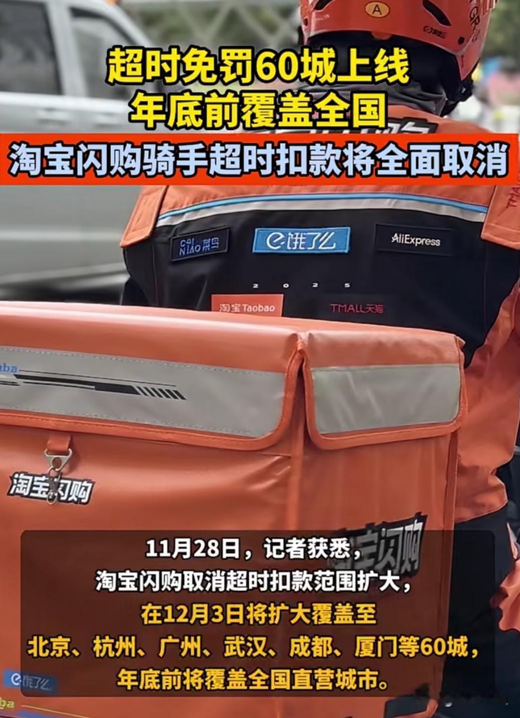 外卖骑手迎来好消息!淘宝闪购宣布全面取消骑手超时扣款,年底前将覆盖全国所有直营城市。这意味着骑手再也不用为了赶时间而冒险闯红灯了。 近年来,外卖骑手因赶时间引发的交通事故频发,超时扣款制度一直备受争议。淘宝这一举措获得广泛好评,但也有人担心会导致配送延迟。其实,合理的配送时间设置和人性化管理,才能真正实现骑手、平台和消费者的共赢。希望更多平台能跟进,让外卖行业更加健康可持续发展。毕竟,安全比速度更重要,不是吗?