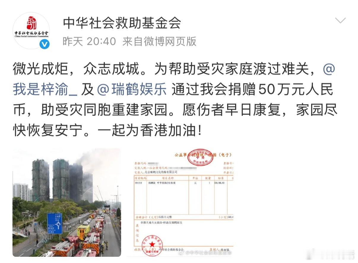 梓渝向香港捐款50万元 梓渝个人合计捐款100万元,粉丝yuni自发捐款50万元,累计为香港募捐150万元。有什么样的正主就有什么样的粉丝