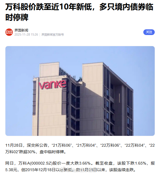 万科的雷究竟多大!周五A股市场呈现普涨格局。截至收盘,上证指数涨0.34%,收于3888.60点;深证成指上涨0.85%,收于12984.08点;创业板指上涨0.70%,收于3052.59点。三大指数全线飘红上涨,但市场成交量能显著萎缩。沪深两市全日成交金额仅15858亿元,较前一交易日减少1240亿元,缩量幅度达7.26%。成交不活跃,流动性变差很快会影响盘面点位了,这里一定要谨慎入场了。大幅缩量首当其冲的就是热门股,还是提醒一句追高不如持币观望。周五万科股债继续下杀,股价已经跌至10年新低。多只债券跌停,临时停牌。时也命也!一个曾被喻为房地产优等生的万科,竟然走到了如此田地。这次研究万科,对周期和价值的理解更深刻了。只有在周期的位置上去理解价值,价值才有意义。举个例子:2021年在帝都东三环买房,市场价1000万的房子,房东家庭变故急卖,900万被你拿下。以低于市场100万的价格买进这套房子,毫无疑问这个买进操作在2021年看是非常有价值的。但是没有考虑周期。2025年同样的房子,大概600万左右就拿到了。2021年低于市场价买房的操作在2025年看几乎没有价值。周期在前,价值在后。在价格顶峰,去考虑价值增加10%还是减少10%没有那么重要。而更应注意价格顶峰出现,上涨周期就要到头了。周期会碾碎在价格顶峰的入场者。等周期底部,再去思考现在的价格和价值的关系,最后再做决策。要知道,周期永远胜在最后。万科犯的错误也是如此,从2018年开始喊活下去。其实公司已经意识到房地产周期顶点已到,拐点即将到来。但是躺着赚钱太舒服了,没人想真正改变。在大企业系统内的每一个链条螺丝都不想吃亏,也都不想到刀砍在身上真的疼。万科在2018年后依然频频拿地,心口不一。那个时候趁着顶峰,接下来几年是有大把时间给万科化债的。现在说啥都晚了,房地产下行周期会毫不留情地教育价格顶峰拿地的企业。即使是被市场吹捧为优质生的万科。那个时候的万科,负债率,融资利率,管理层,产品与运营模式,品牌和认可度,多元化超前布局等都远远优于同行。2018年的万科股价顶峰,那个时候看是不是很有价值。但最终周期赢了。现在的万科是风雨飘摇的万科。万科的雷大到不是地方能解决的了。行业周期底部,资产是不值钱的。而负债确实实打实要还的。万科最新披露的有息负债是3544亿,每年要产生60-70亿的利息。欠供应商1311亿,其他应付款1399亿。还未交付给业主的房子,对应的合同负债还有1319亿。共计差不多7573亿的债务。2024年深圳市的财政收入才3914.2亿元,这么一比大家就知道万科的雷有多大了。别说一个深铁集团了,就算是倾尽深圳地方之力也很难救活了。曾经的白马,化作了现在的唏嘘,化作了后来人的教训。资本市场就是这么残酷,未来的房地产还会有再繁荣的时候,但万科可能见不到了。风险提示:短期涨跌不预示未来,如提及个股或基金不代表投资建议。投资需谨慎。基金 A股超话财经基金