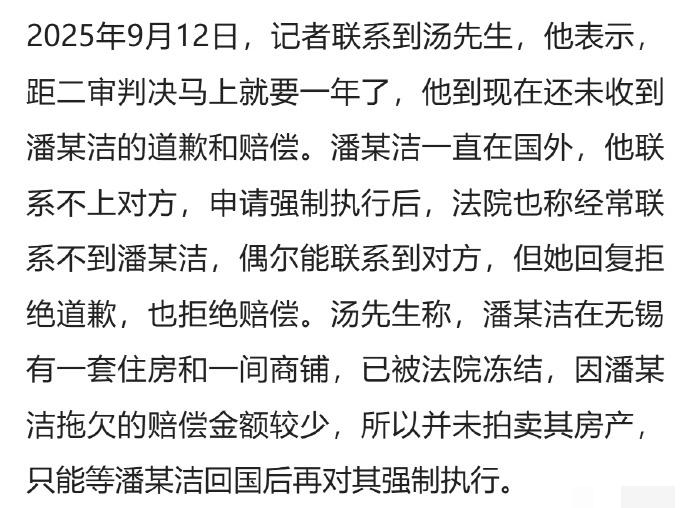自今年7月1日后,这案子已经上过数次热搜了。 这个案子的案情很简单。 就是有个XX造她的黄谣,把她的照片和联系方式发到外网去,导致她在国内的生活受到严重影响。 不仅工作没了,还抑郁了,老公也因此跟她离婚。 而造她黄谣的人,直到她线上建联,也不知道她的真实身份。 直到她不堪其扰,向对方“坦白”后,对方才“恍然大悟”,于次日去派出所投了案。 经调解,对方不仅要公开道歉,还要赔偿20万。 但直到如今,哪怕历经诉讼,她也只是获得了道歉,赔偿始终未至。 为什么会这样? 因为对方没钱,没钱就没法执行,哪怕司法拘留15天,该没钱也还是没钱。 事实上,胜诉后迟迟拿不到赔偿的,不只是她。 无锡蛋糕店老板亦是如此。 比她更惨的是,造谣蛋糕店老板的潘某洁,其实是可以执行的。 据报道,潘某洁在国内有一套店铺外加住房,已经被法院冻结。 但法院却始终没有拍卖其房产,不知道是在忧虑什么。恶意的谣言 网络谣言鉴定 身边的法律问题