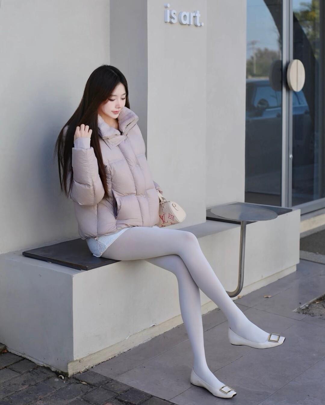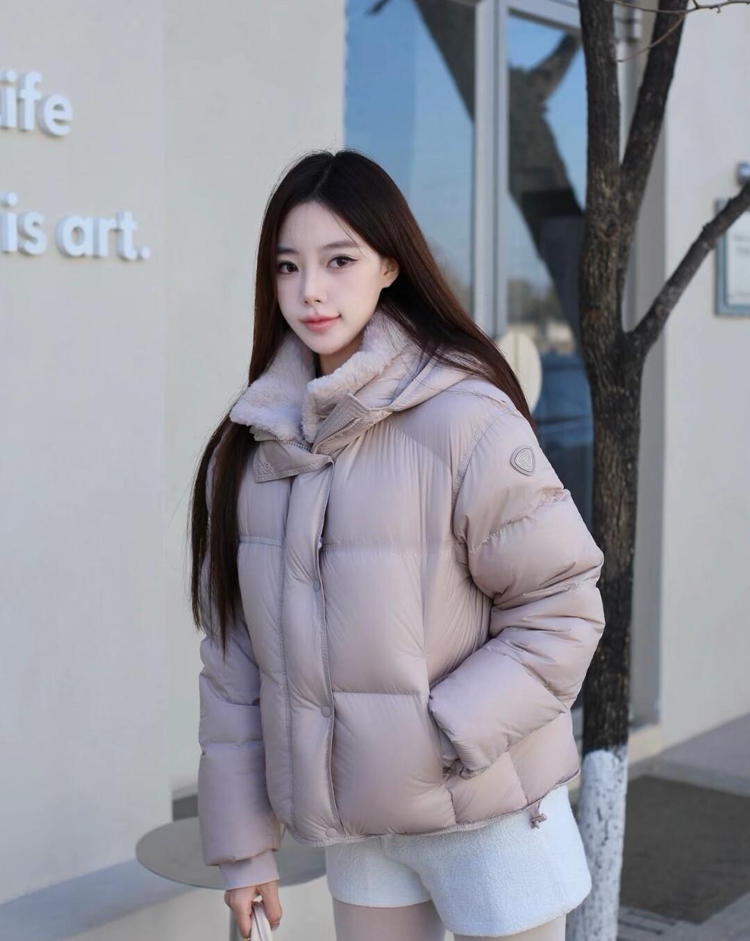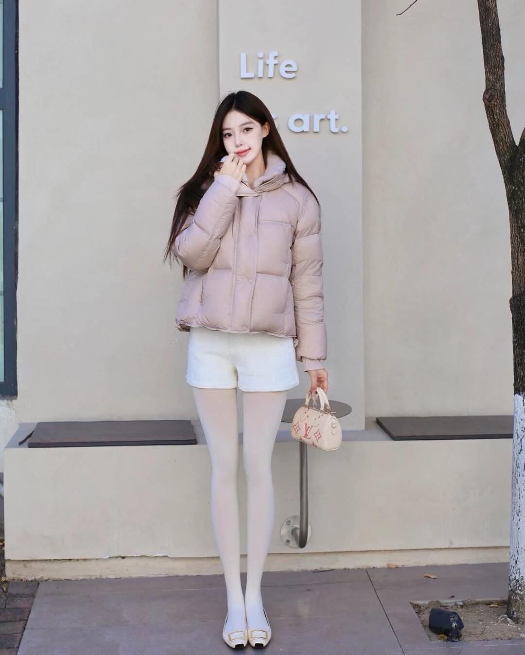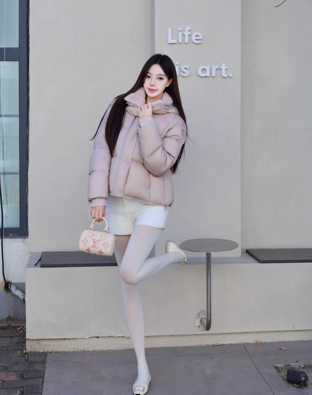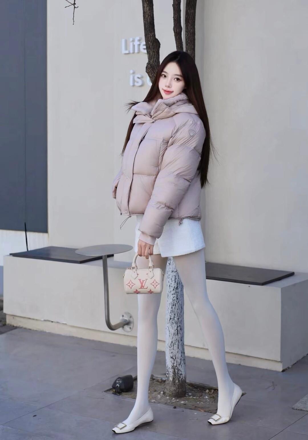 冬日穿搭指南:粉色羽绒服+白色短裙,温暖又时尚!