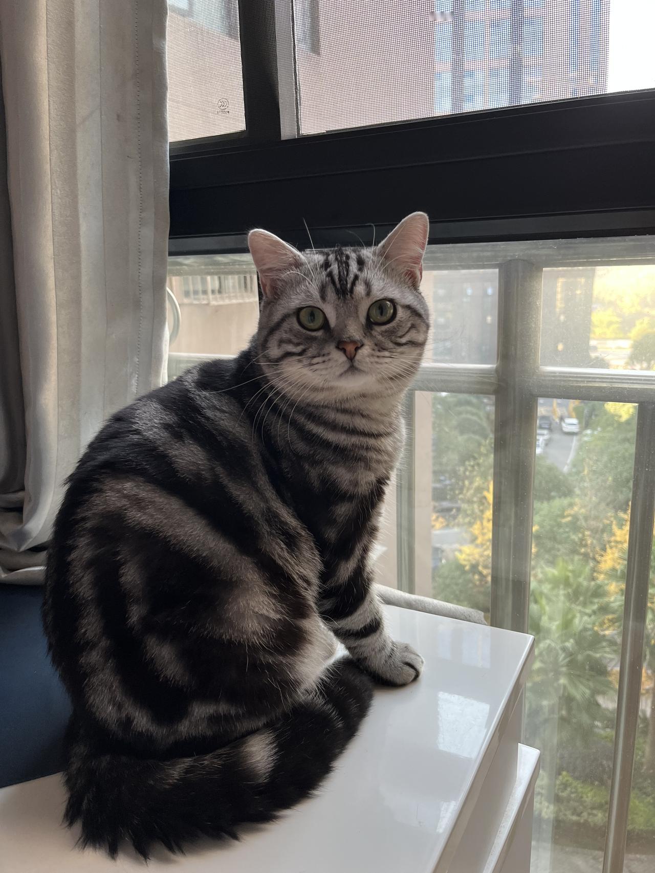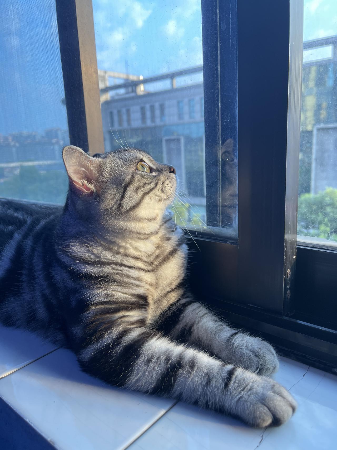 晒晒你家猫的可爱瞬间我家毛球每天守着家门等家人回家[耶]
