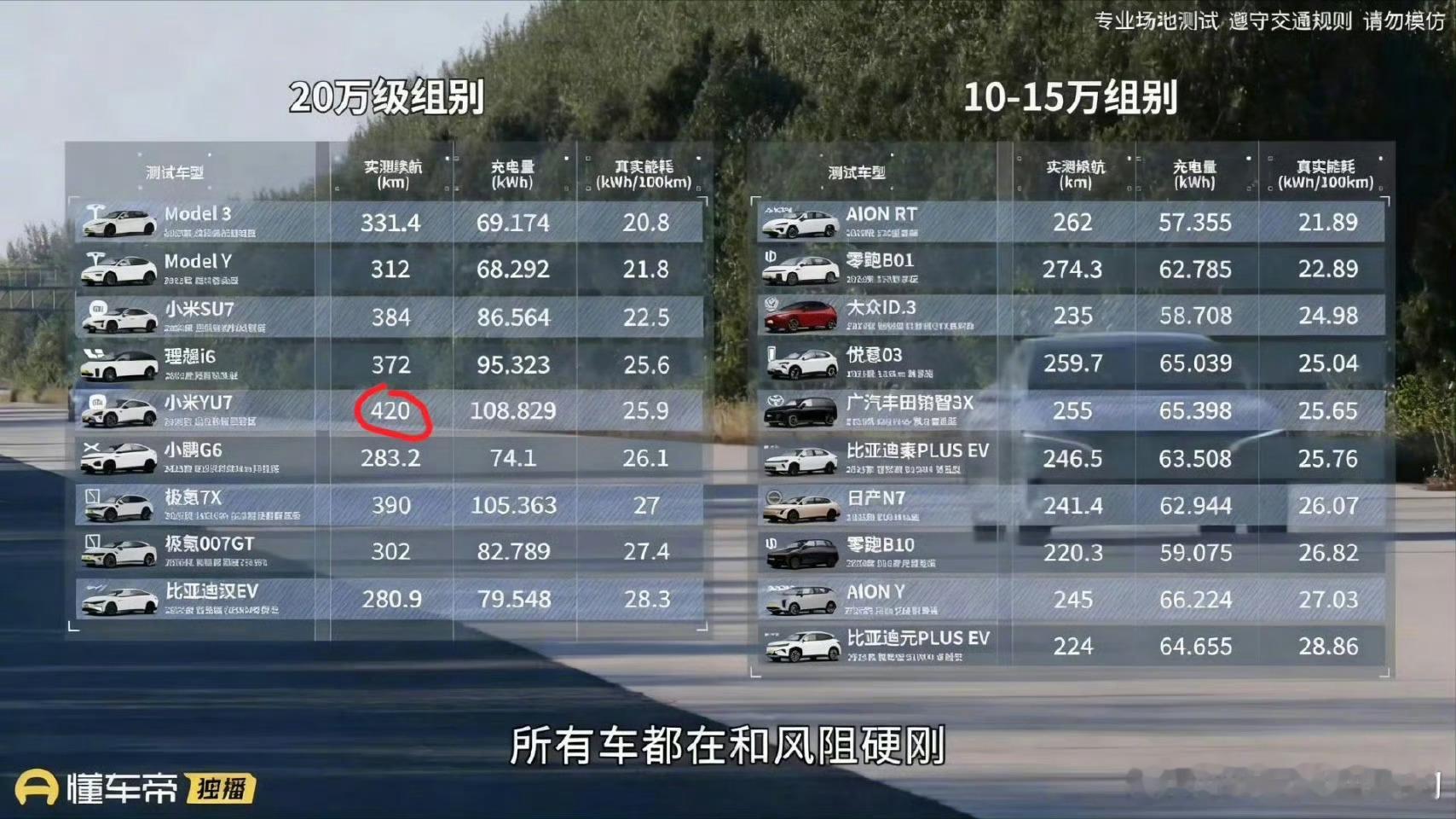 为什么【与Model Y比i6低风阻优势没了】?i6太重了!2380kg,比Model Y重了490kg(1890kg)比小米YU7重了65kg(2315kg)懂车帝测试结果和我的实际使用场景的结果差异还是蛮大的几乎同样条件,我平均速度105km/h,用了90%电,开了412km懂车帝120km/h匀速测试,载重375kg,空调24℃自动理想i6续航372km,风阻系数0.22,达成率51.7%小米YU7续航420km,风阻系数0.245,50.3%Model Y续航312km,风阻系数0.23,52.6%小米yu7理想i6modely