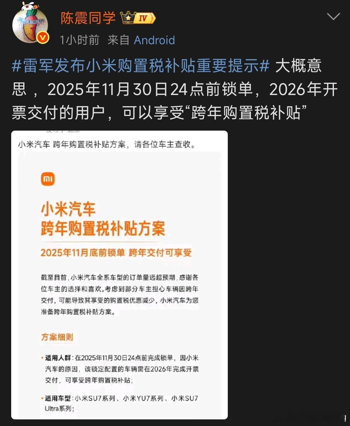 雷军说,“小米YU7凭借卓越的能耗管理,成为全场跑得最远的车型,而小米SU7是最
