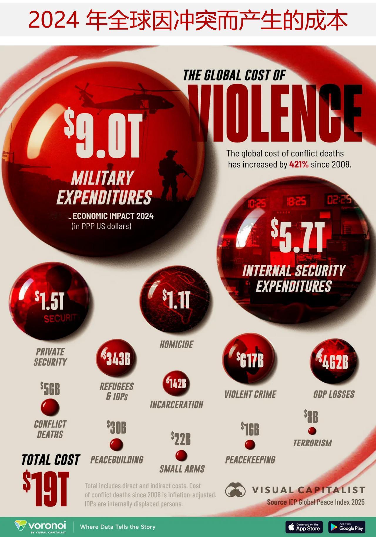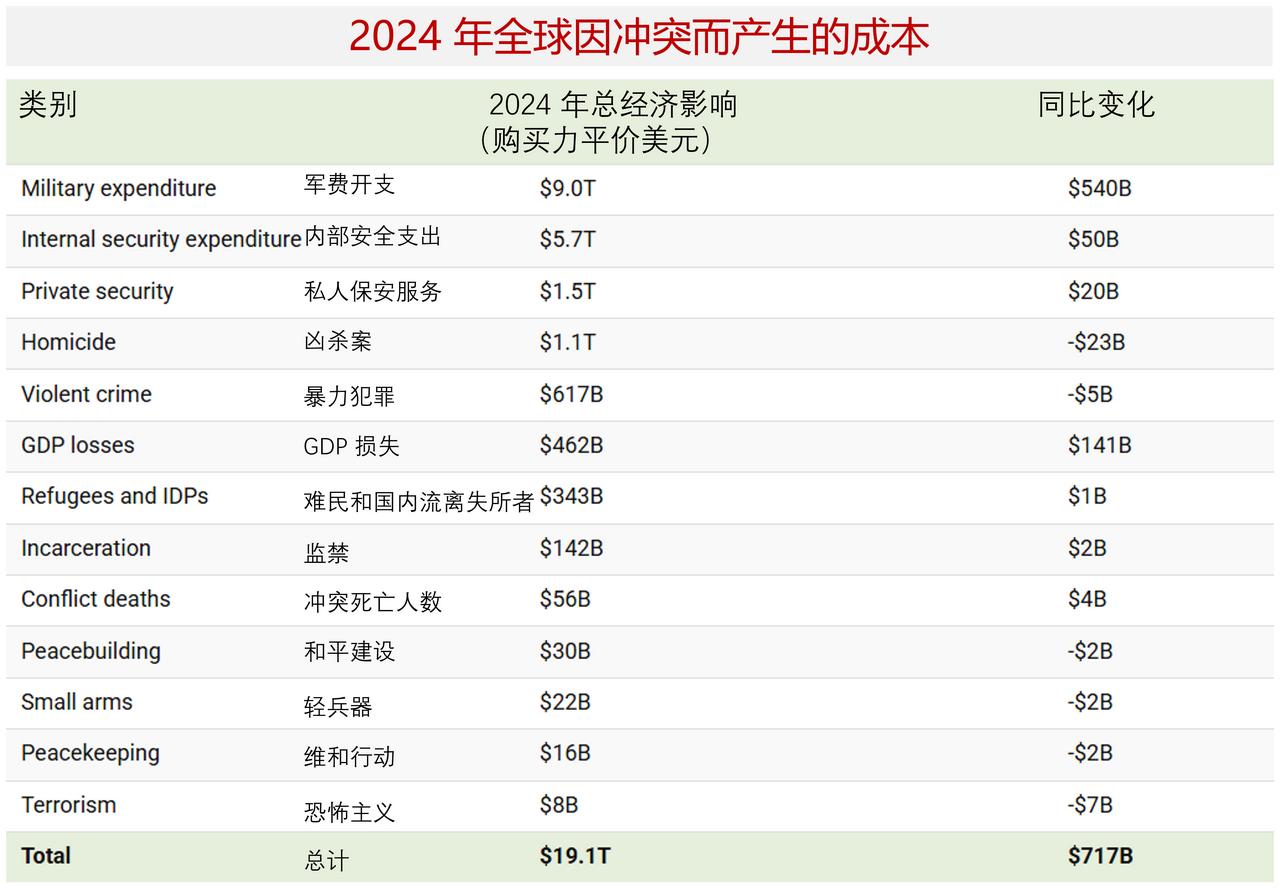 2024年全球冲突造成的经济成本达到了19万亿美元,这些钱都花在哪里? 2