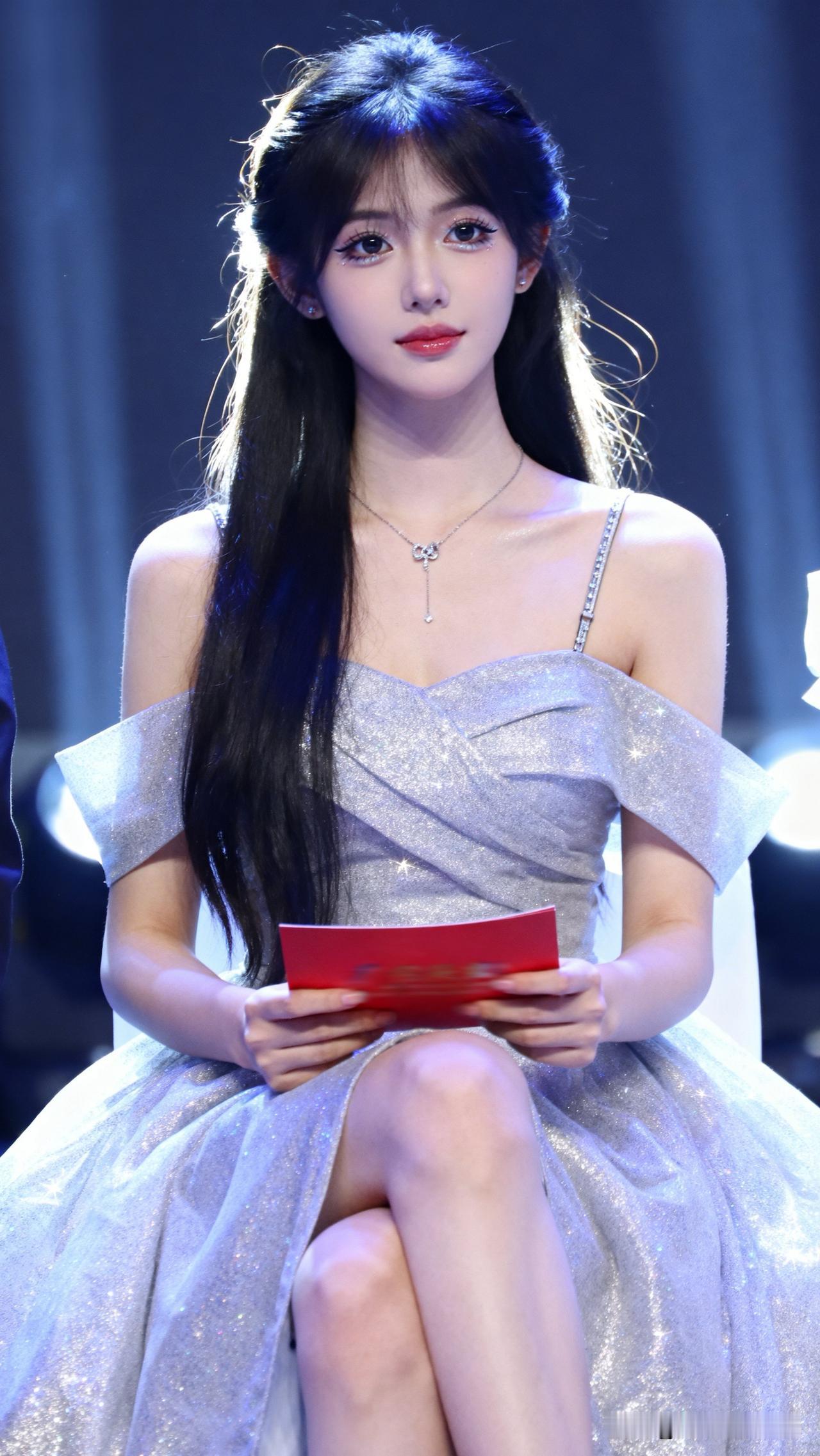 梦幻舞台上的甜美少女,手持红信封,星光闪耀的礼服,宛如童话中的公主。