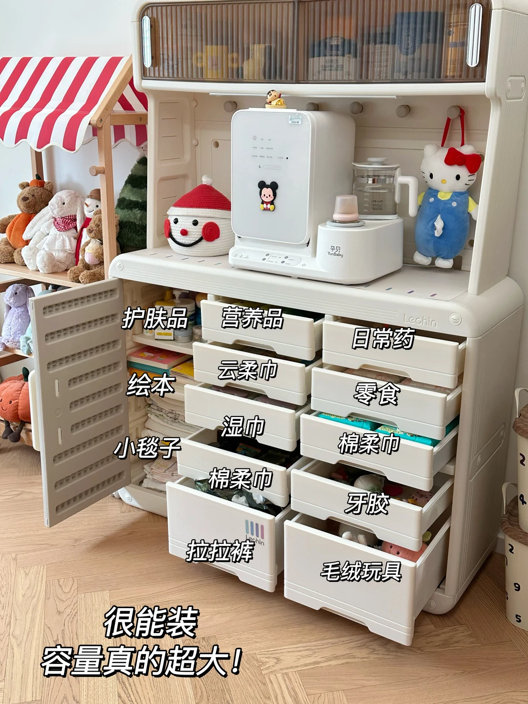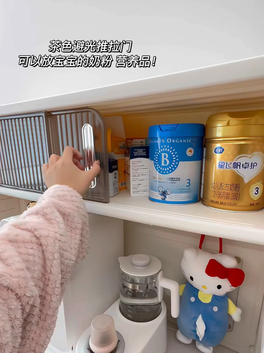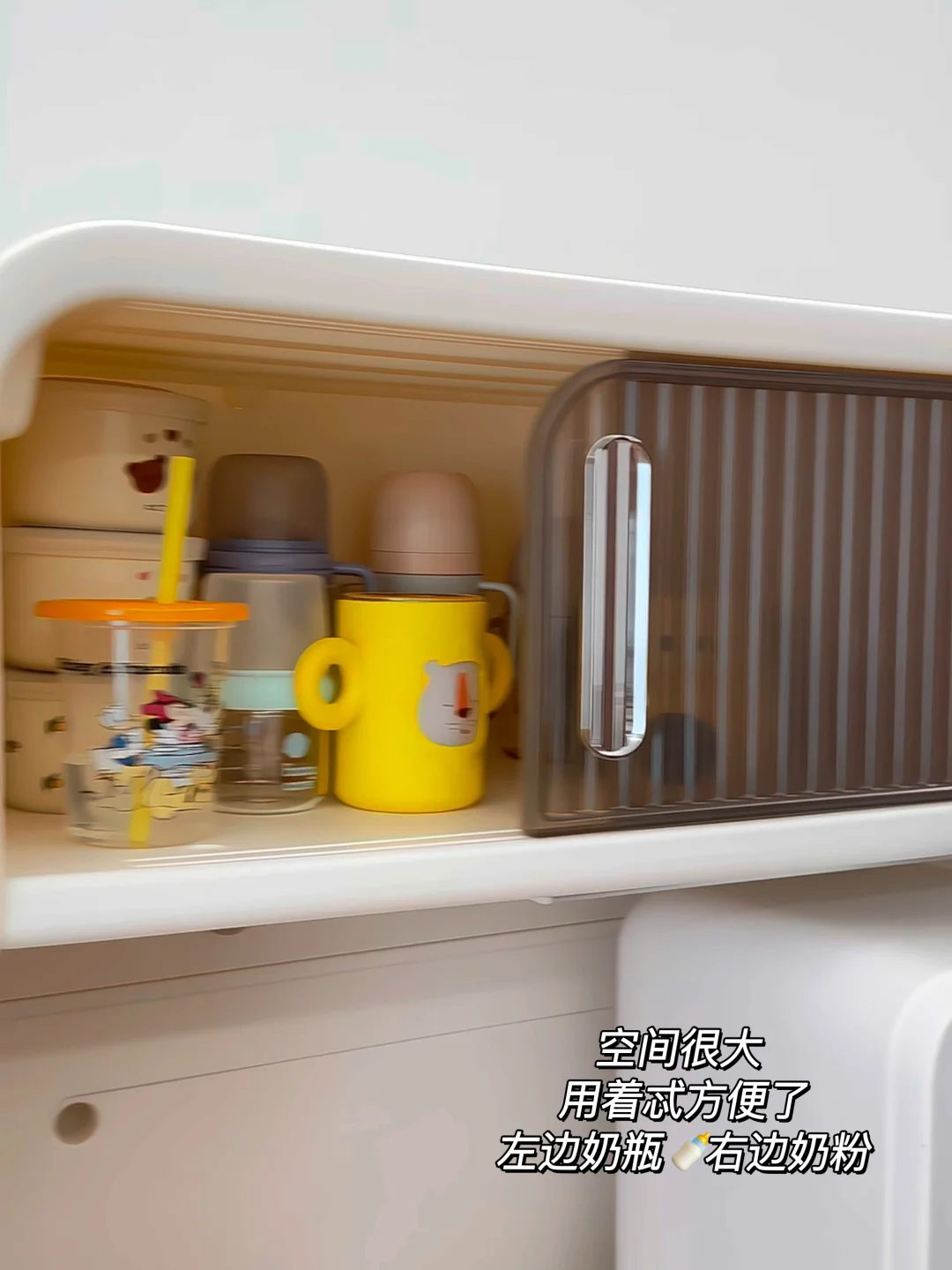 真的是一眼看中的喂养台, 到货之后马上就安装好了! 空间真的超大,很能装, 孩子的各种东西都可以收纳进去。 尤其是上面的避光推拉门, 左边放孩子奶瓶🍼,右边放奶粉, 用起来简直不要太顺手!!! 环保PP材质无异味,而且防尘易清洁,小体积不占空间,娃的杂物全归置。可以摆卧室,也可以摆客厅,颜值在线摆哪都搭👍🏻 等宝宝长大了也不会闲置,可以收纳娃娃啊,书啊什么的~层板也可调节,各种囤货想怎么收纳就怎么收纳,实用又贴心💯