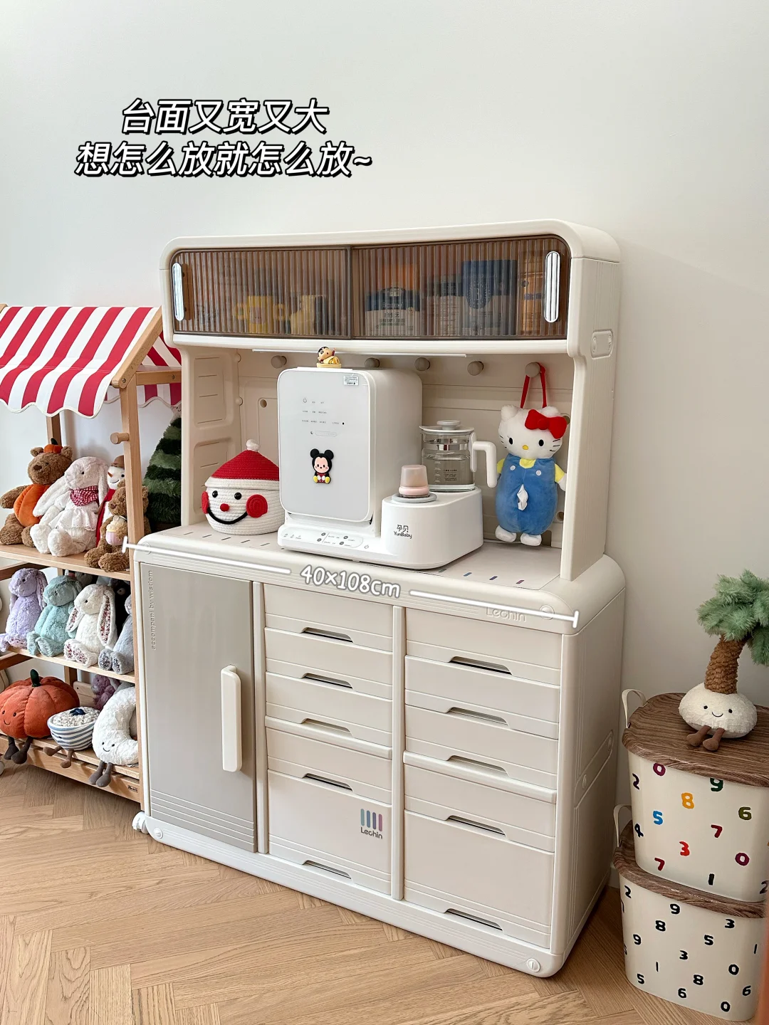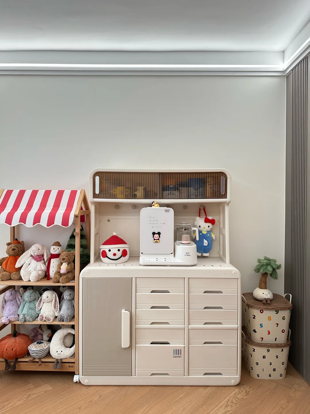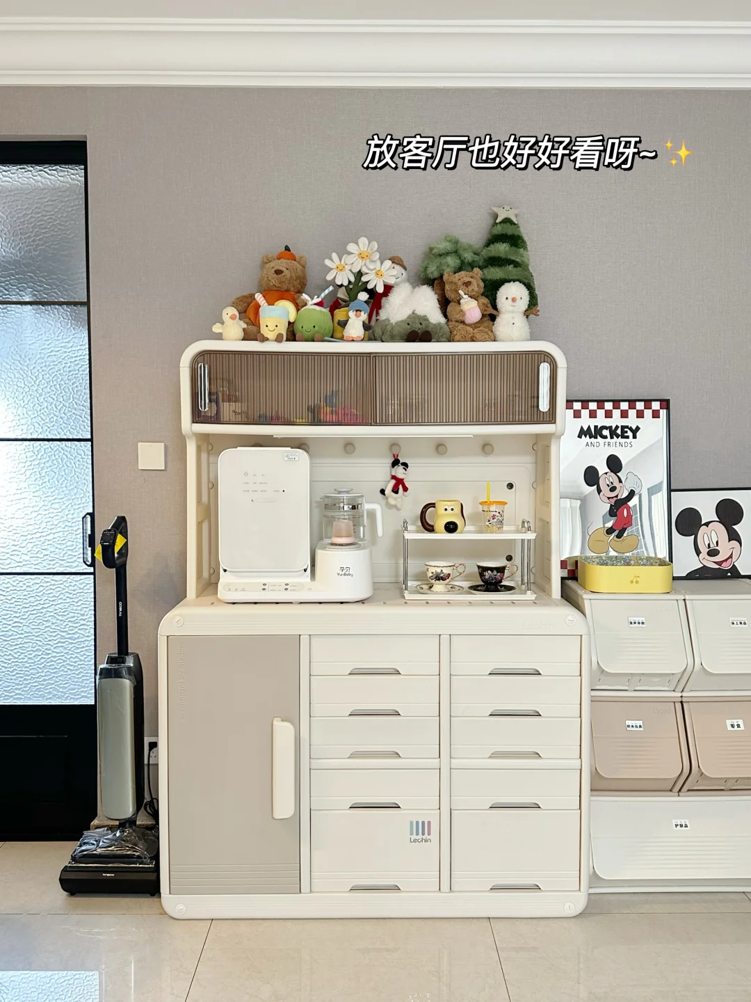 真的是一眼看中的喂养台, 到货之后马上就安装好了! 空间真的超大,很能装, 孩子的各种东西都可以收纳进去。 尤其是上面的避光推拉门, 左边放孩子奶瓶🍼,右边放奶粉, 用起来简直不要太顺手!!! 环保PP材质无异味,而且防尘易清洁,小体积不占空间,娃的杂物全归置。可以摆卧室,也可以摆客厅,颜值在线摆哪都搭👍🏻 等宝宝长大了也不会闲置,可以收纳娃娃啊,书啊什么的~层板也可调节,各种囤货想怎么收纳就怎么收纳,实用又贴心💯