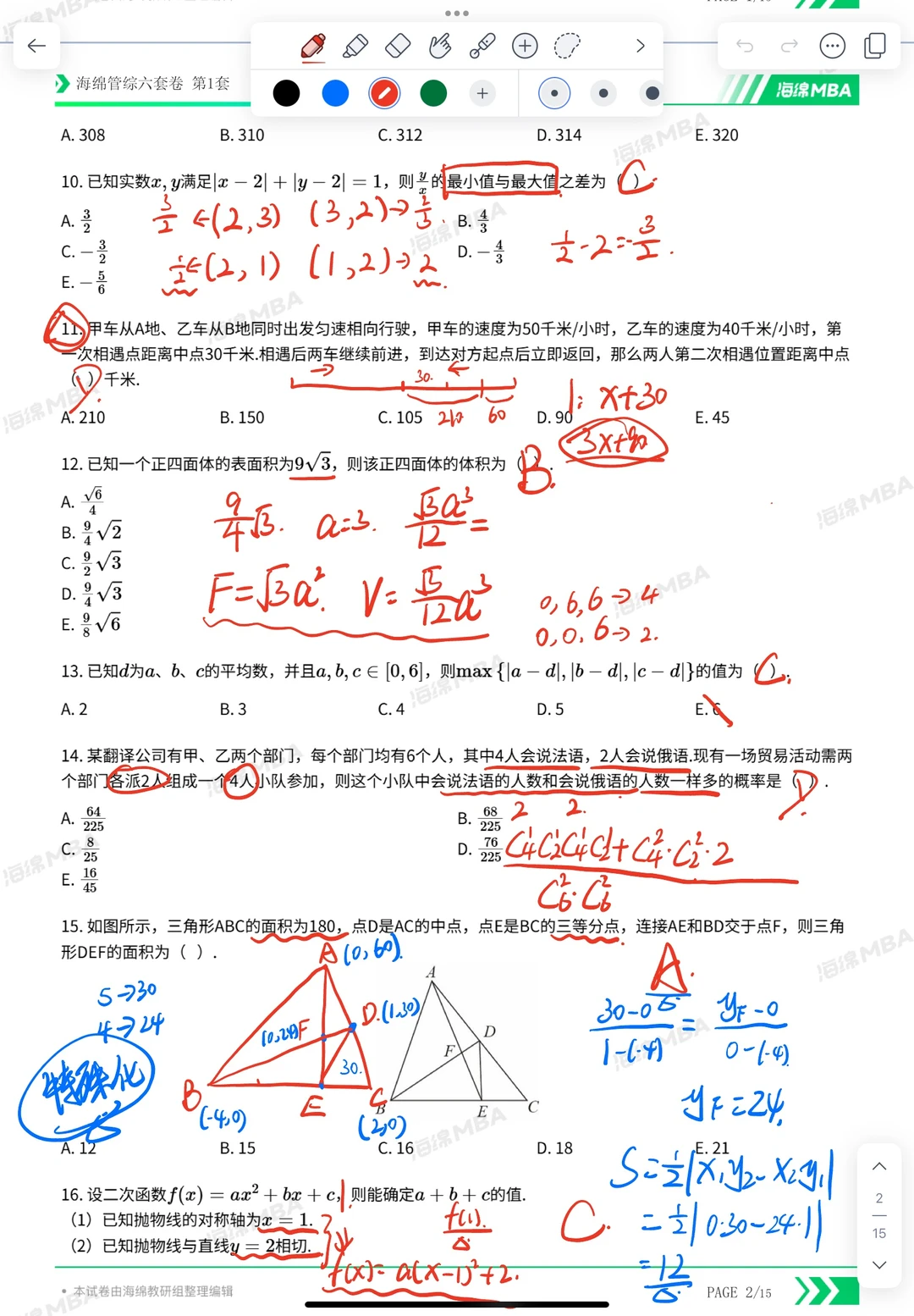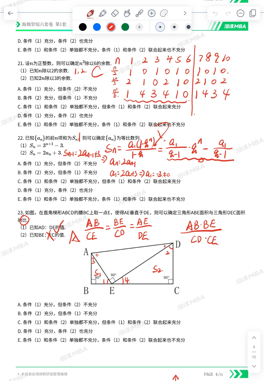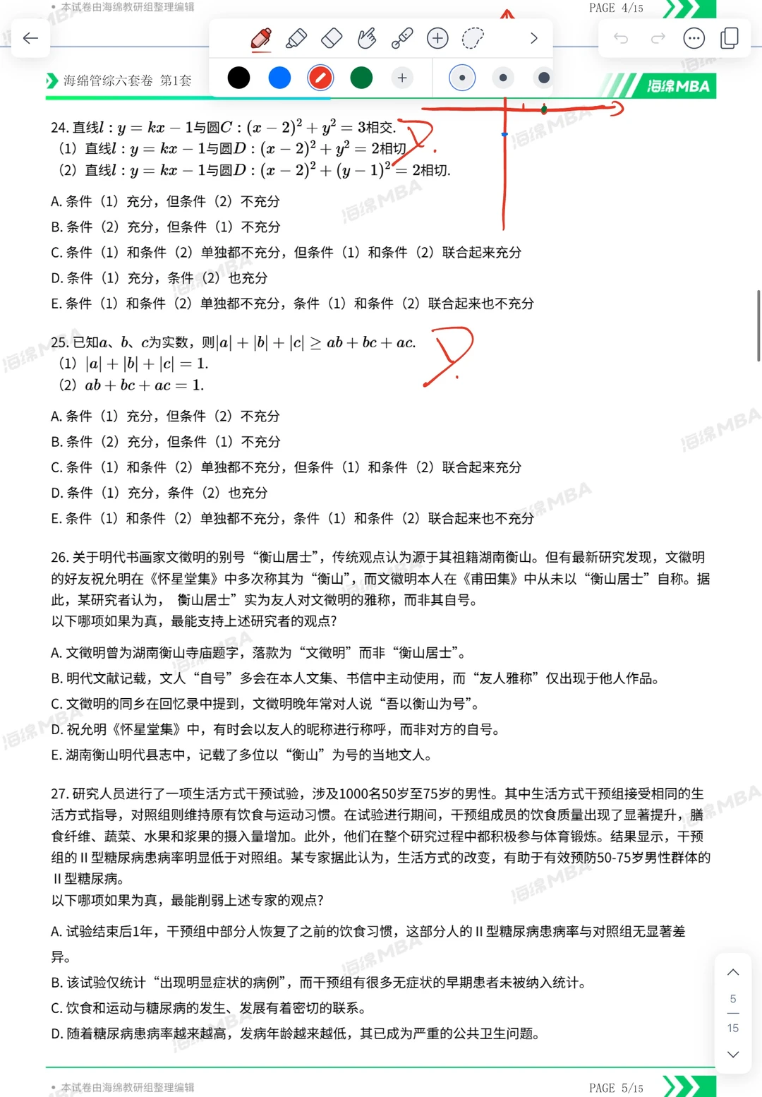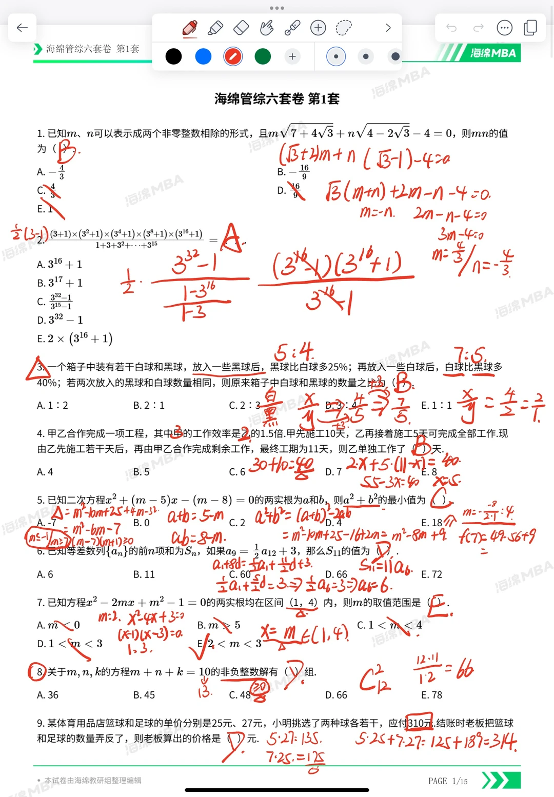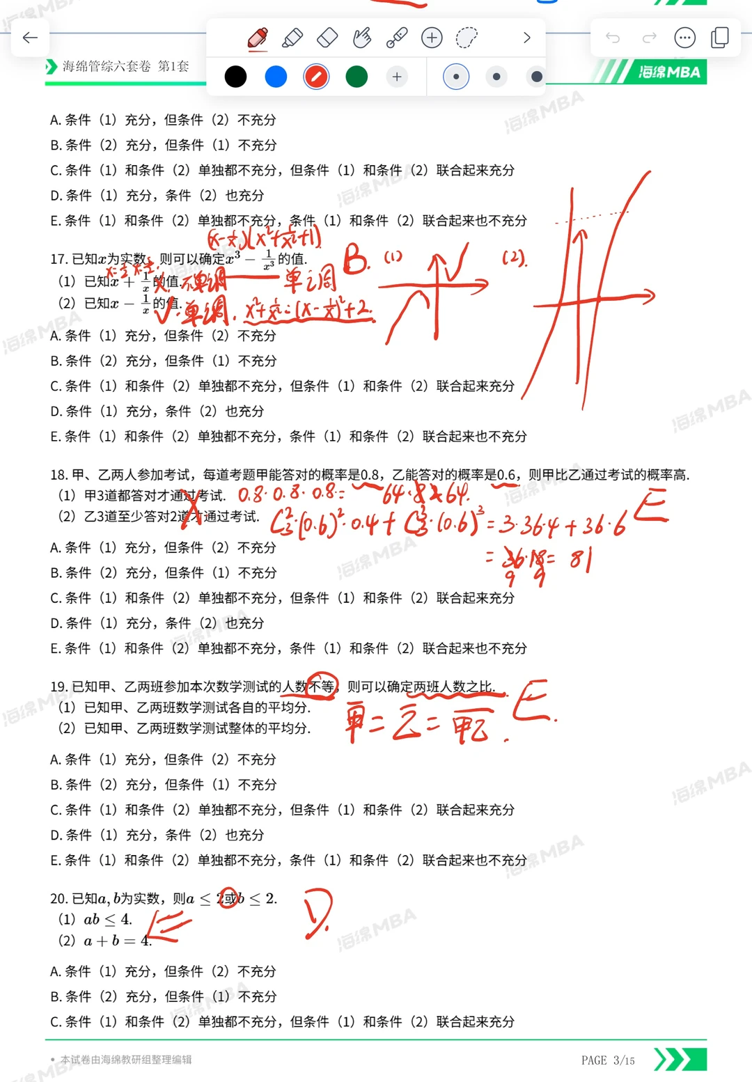 海绵6套卷1数学部分的解析!!!! 运算量有点大,但是值得做一下! 前面是解析,后面是我的解题过程,供大家参考。