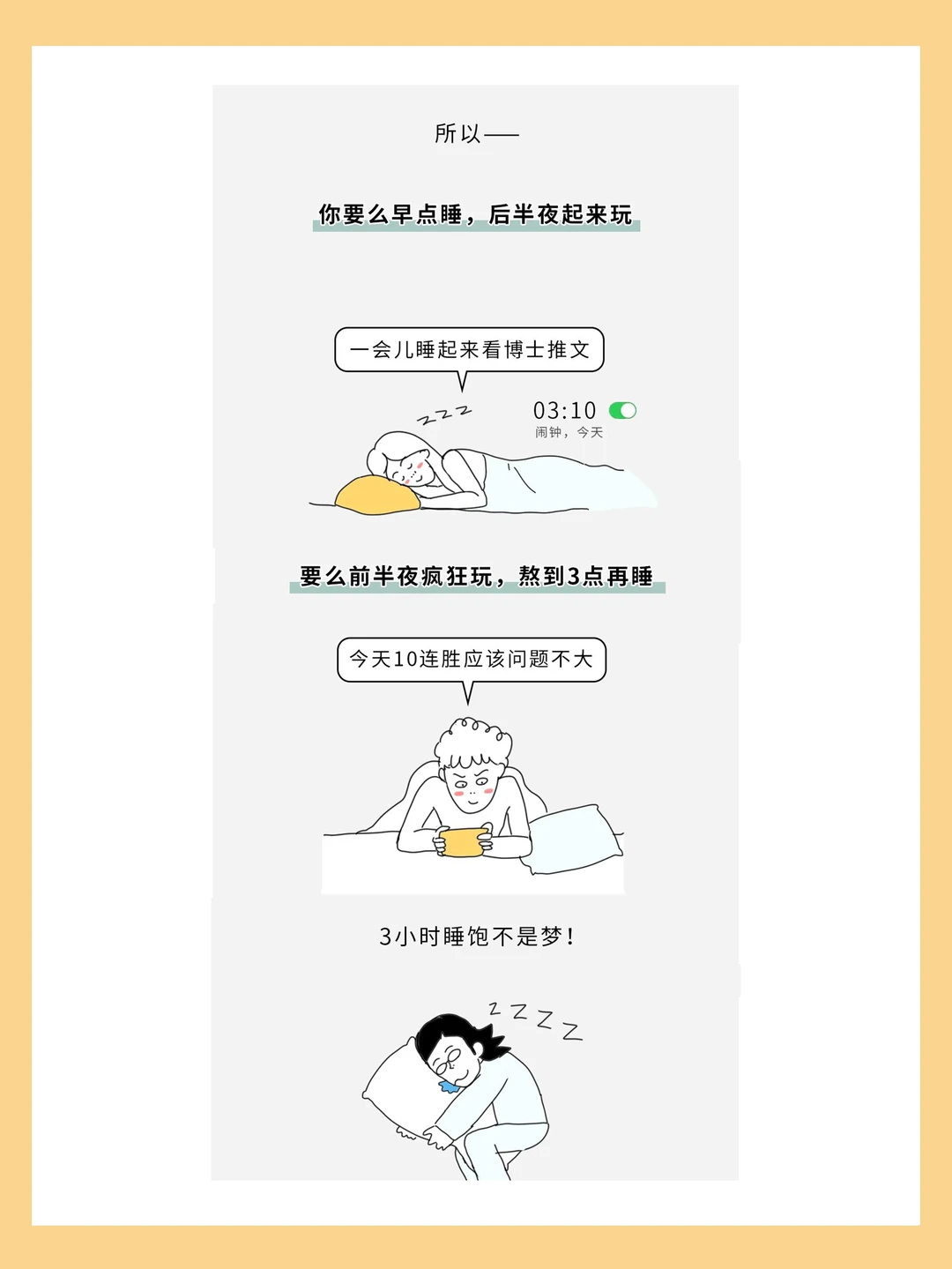 首先需要说明的是 长期睡眠不足 对身体的伤害是很大的 如果条件允许 一定要保持规律、充足的睡眠 但话说回来 很多时候我们不得不面对 睡眠时间不足的情况 比如加班赶工 每天只有几小时睡眠时间 比如工作性质特殊 需要上晚班、值夜班 再比如就是单纯的不想睡 想利用晚上的时间 做点自己想做的事 所以今天要跟大家 一起讨论的就是 如果不得不熬夜 如何用3个小时的时间 睡出8个小时的效果