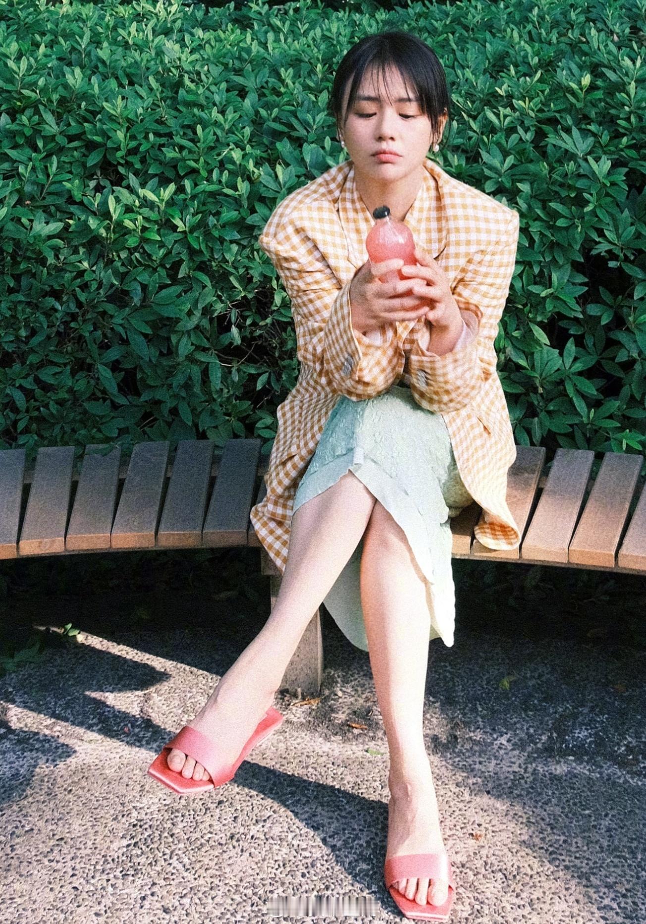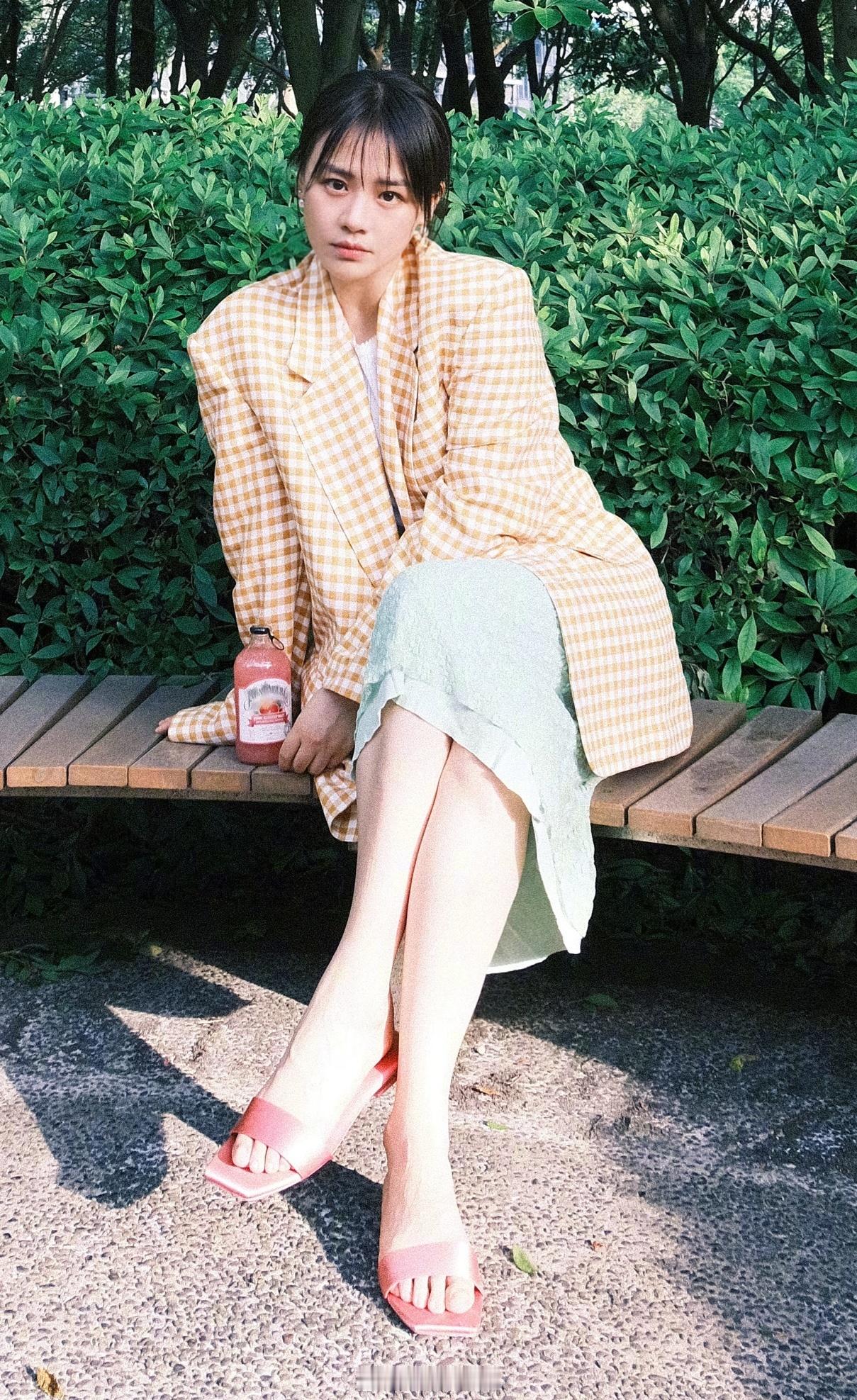 吴艳妮在成都穿着短裤大腿看起来很粗壮,表情自信又张扬