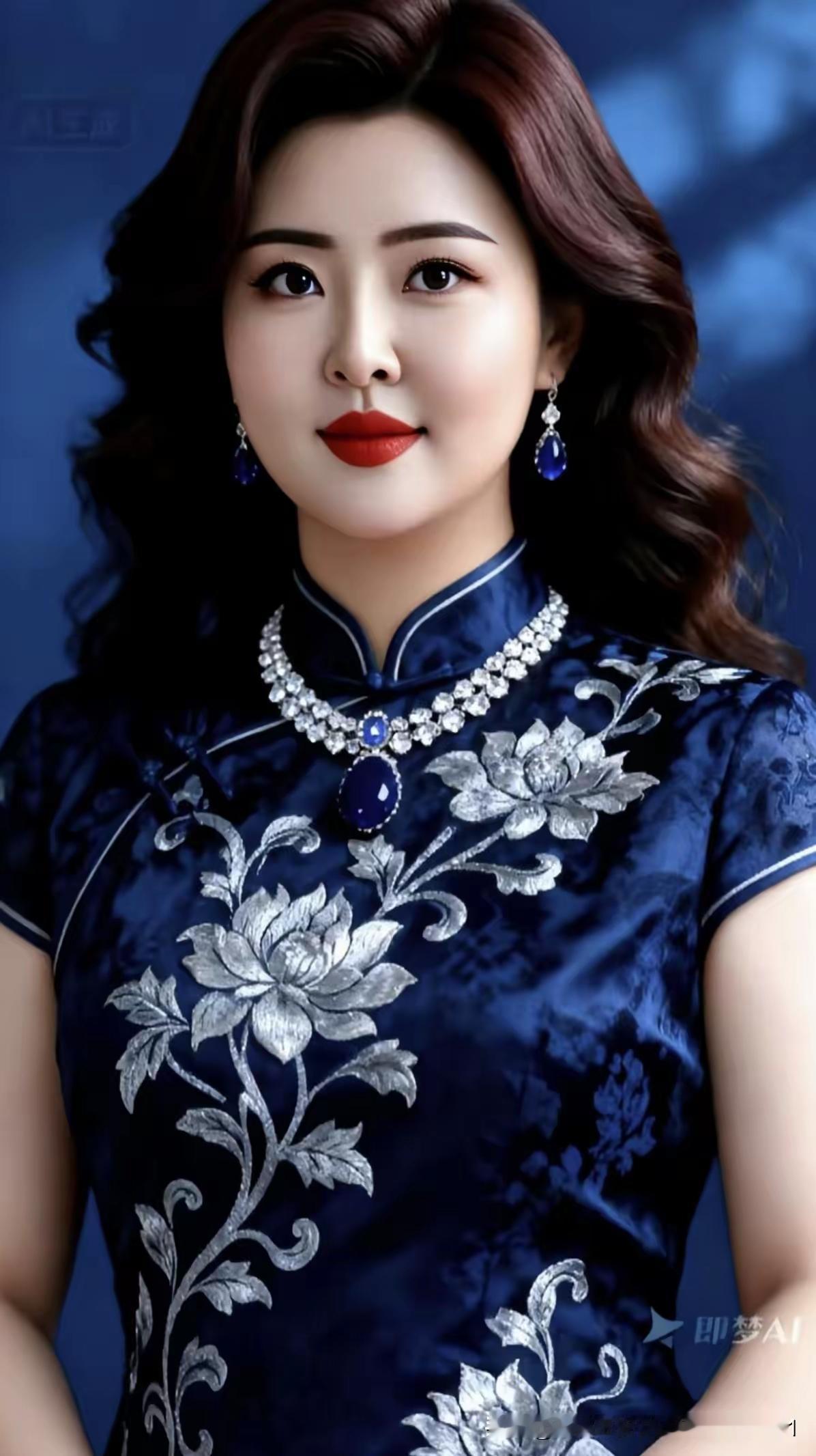 她身着水墨风旗袍,牡丹晕染间尽显东方气韵,乌发如瀑,耳饰轻摇,倚栏时腰肢纤细,眼